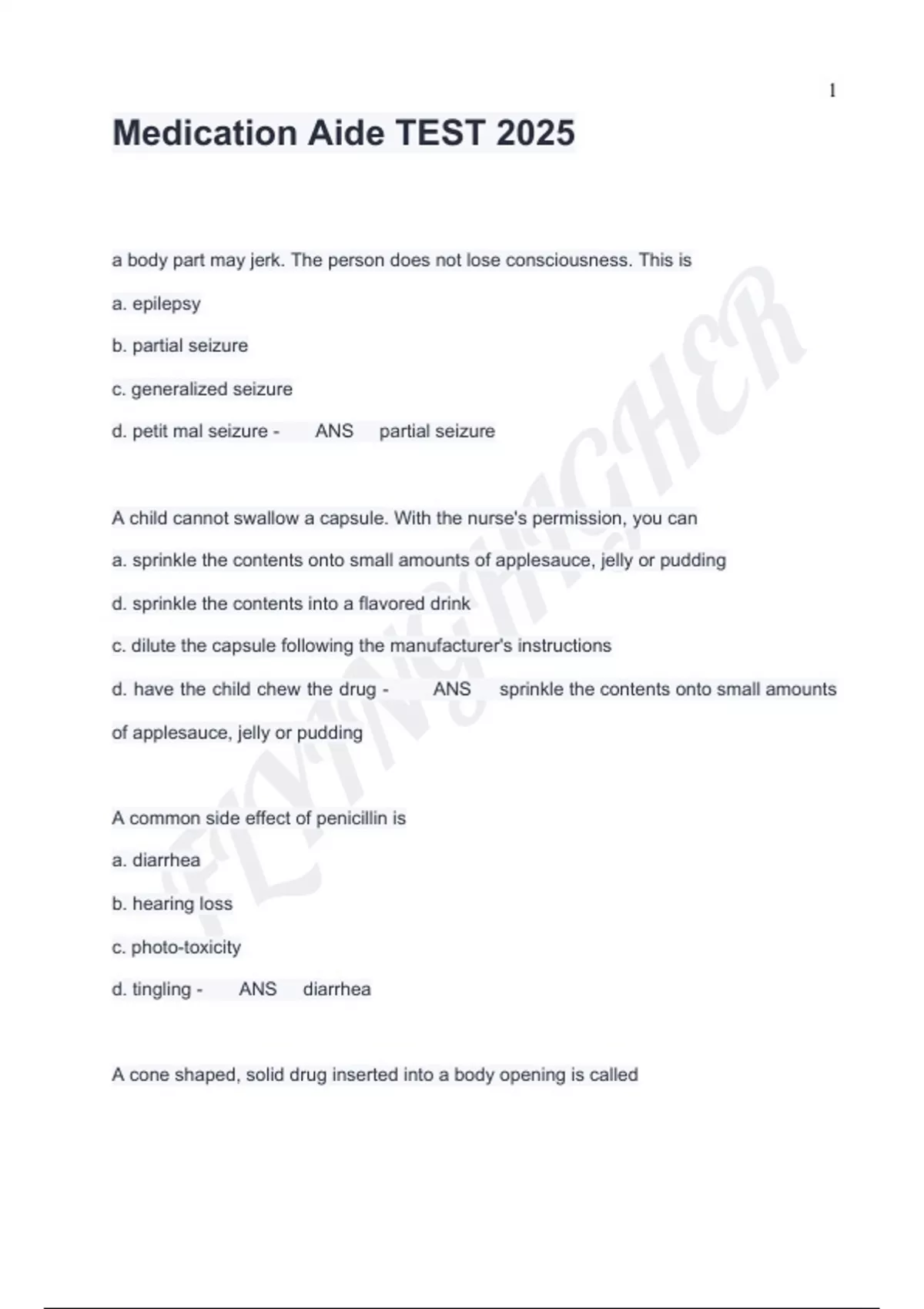 Medication Aide TEST 2025 questions & answers|| NEW!!
