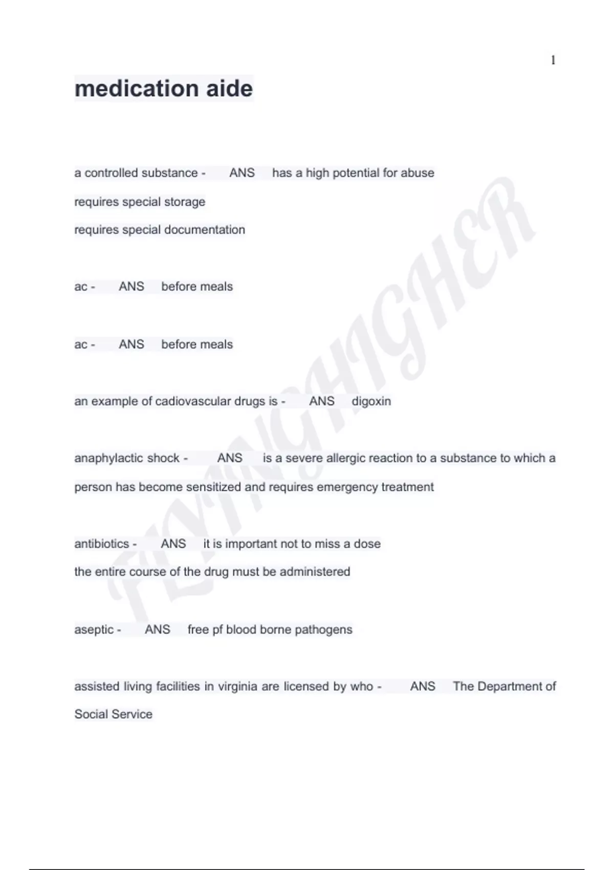 aseptic - ANS free pf blood borne pathogens
