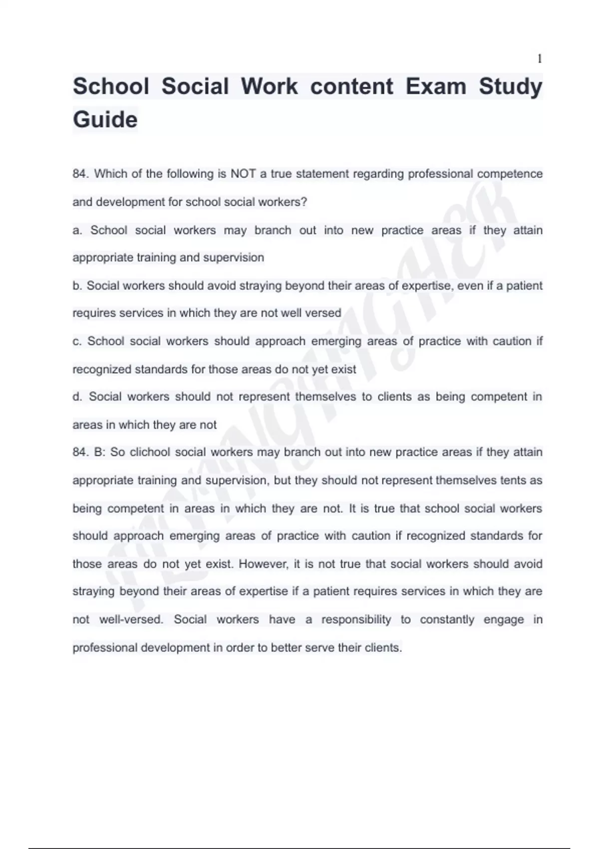 84. B: So clichool social workers may branch out into new practice areas if they attain
