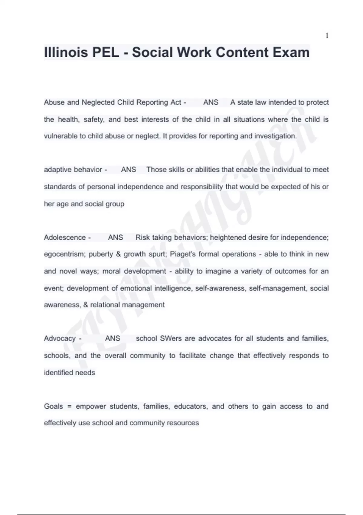 Illinois PEL - Social Work Content Exam