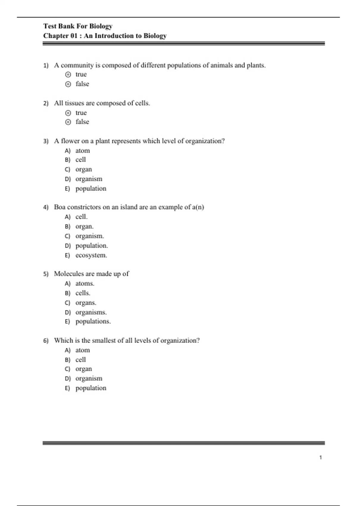 , Test Bank For Biology