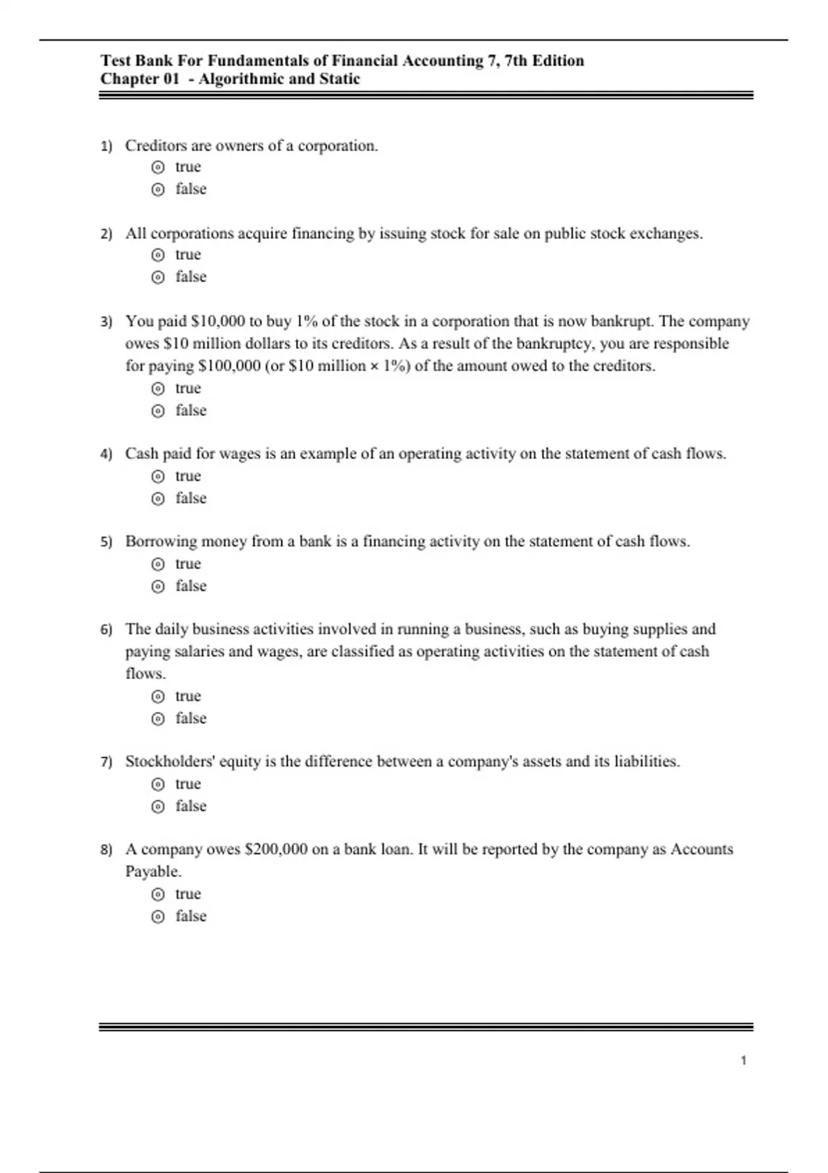 , Test Bank For Fundamentals of Financial Accounting 7, 7th Edition