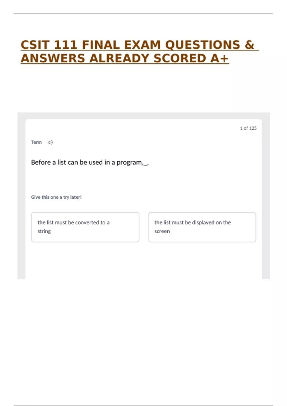 CSIT 111 FINAL EXAM QUESTIONS & ANSWERS ALREADY SCORED A+