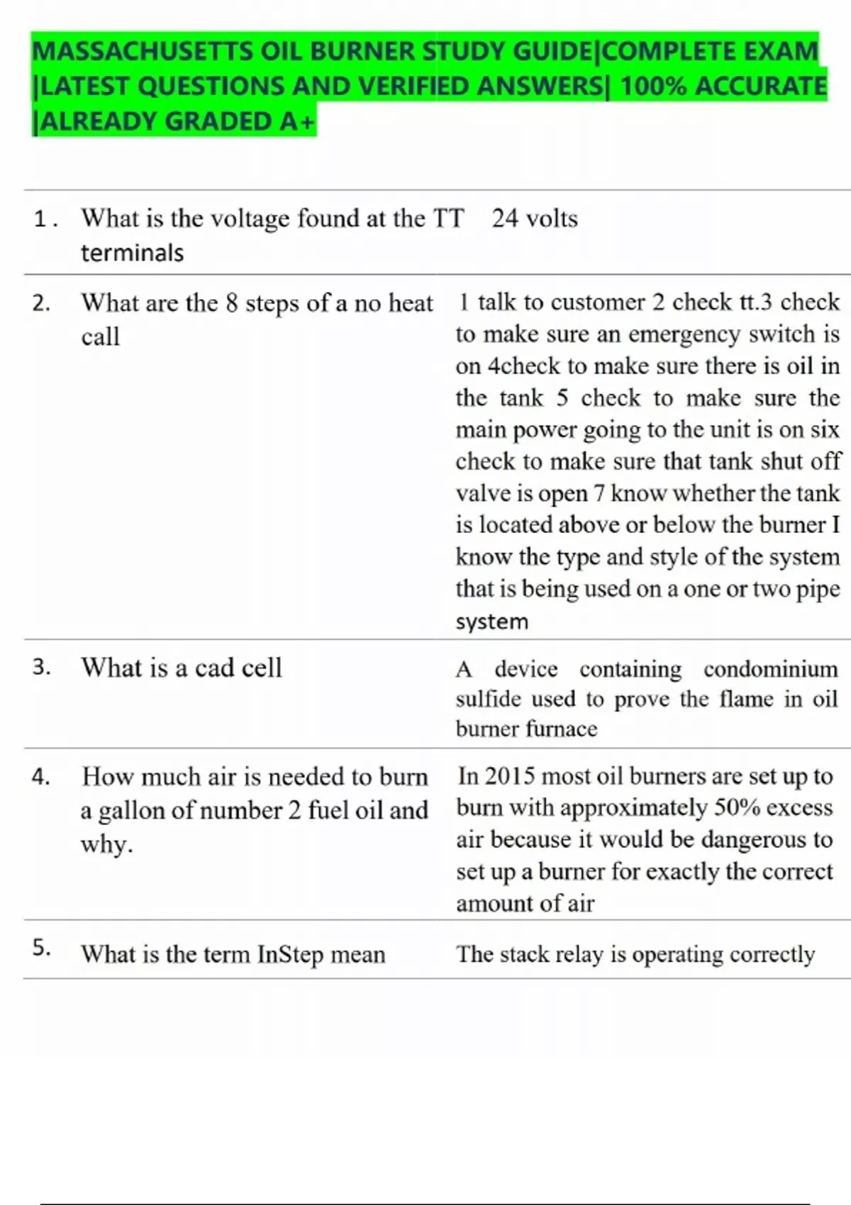 MASSACHUSETTS OIL BURNER STUDY GUIDE|COMPLETE EXAM |LATEST QUESTIONS AND VERIFIED ANSWERS| 100% ACCURATE |ALREADY GRADED A+