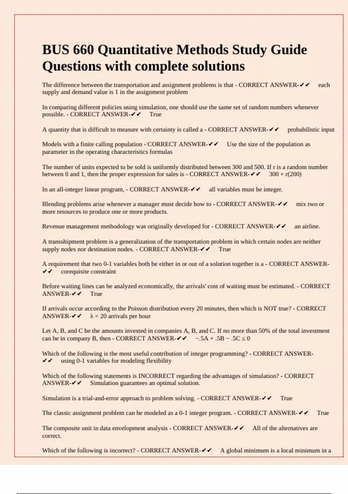 ANSWER-✔✔✅Simulation guarantees an optimal solution.