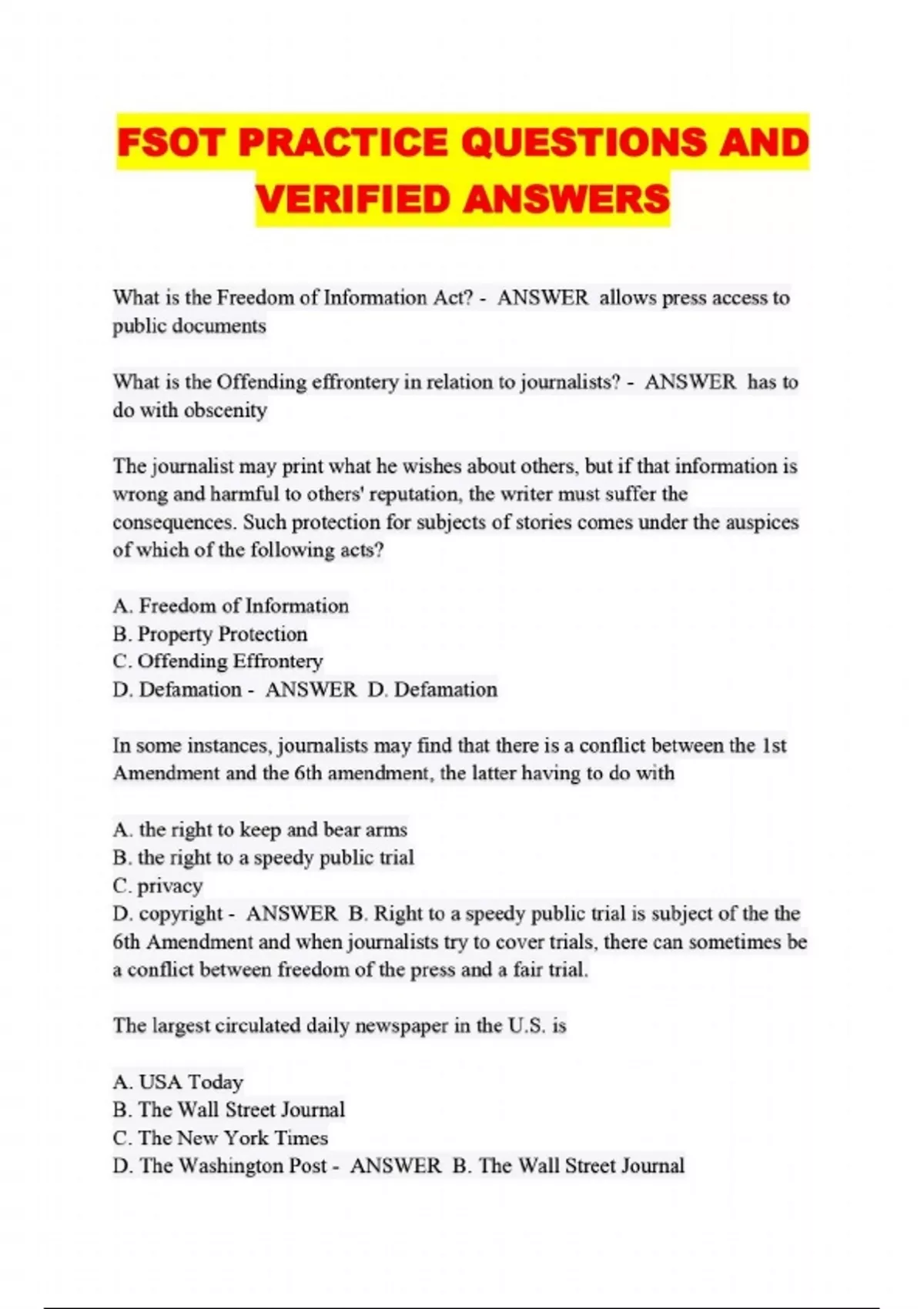 FSOT PRACTICE QUESTIONS AND VERIFIED ANSWERS...
