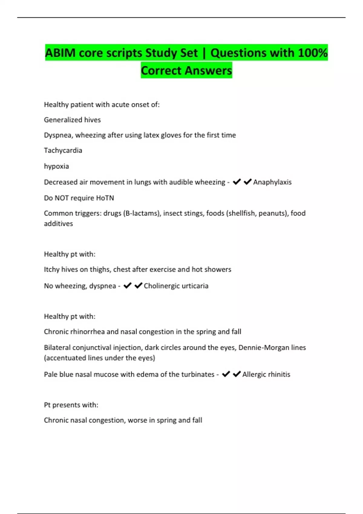 ABIM core scripts Study Set | Questions with 100%