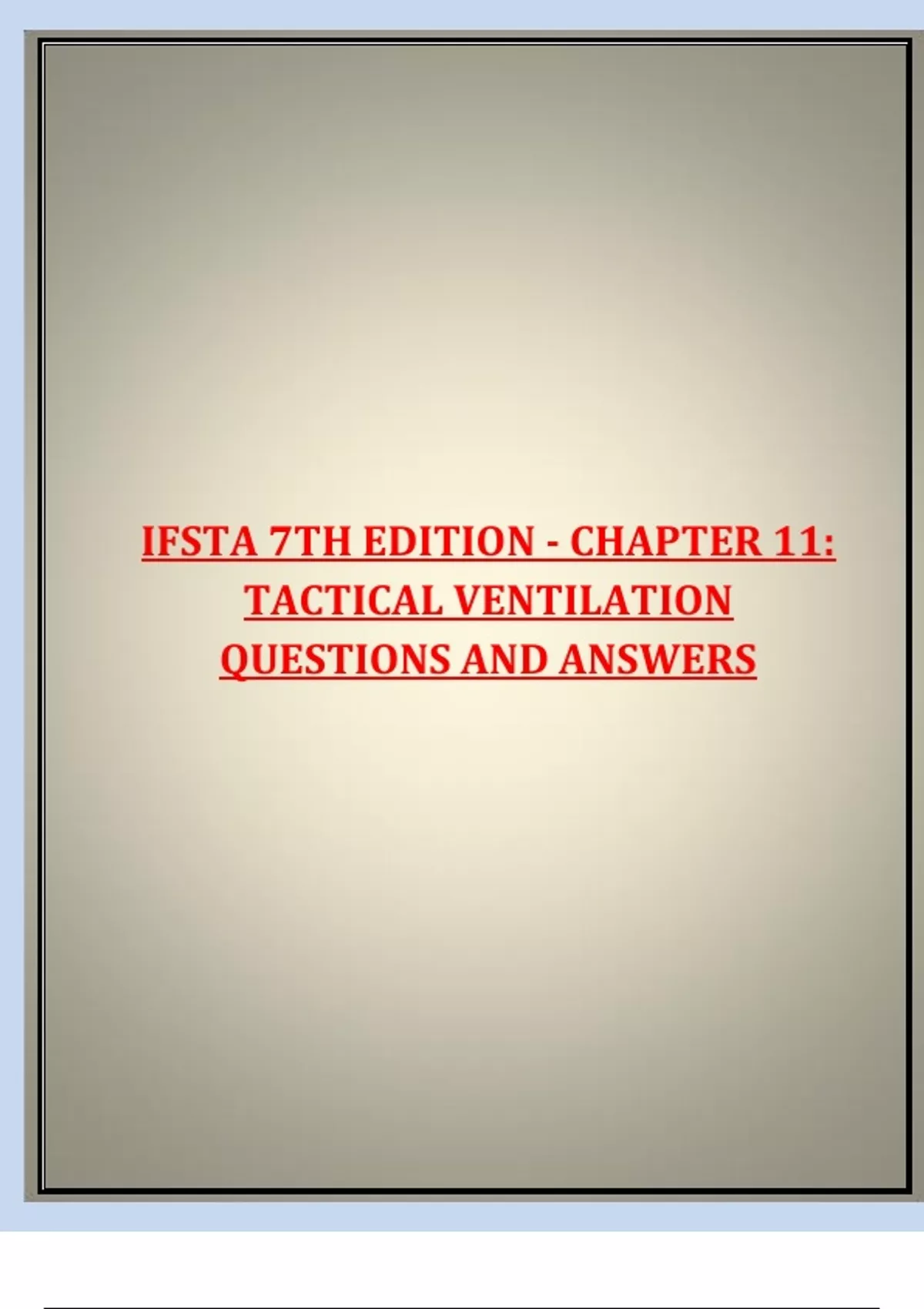 IFSTA 7TH EDITION - CHAPTER 11: TACTICAL VENTILATION QUESTIONS AND ANSWERS Tactical ventilation is performed during fire attack to: (493) - ANS-Help control the fire Why is ventilation used during overhaul and loss control? (493) - ANS-Evacuate smoke from structures after a fire has been extinguished When performing tactical ventilation, what action has the most impact on successful ventilation? (494) - ANS-Controlling oxygen availability Which action may improve visibility inside structures so that interior crews can work more effectively? (494) - ANS