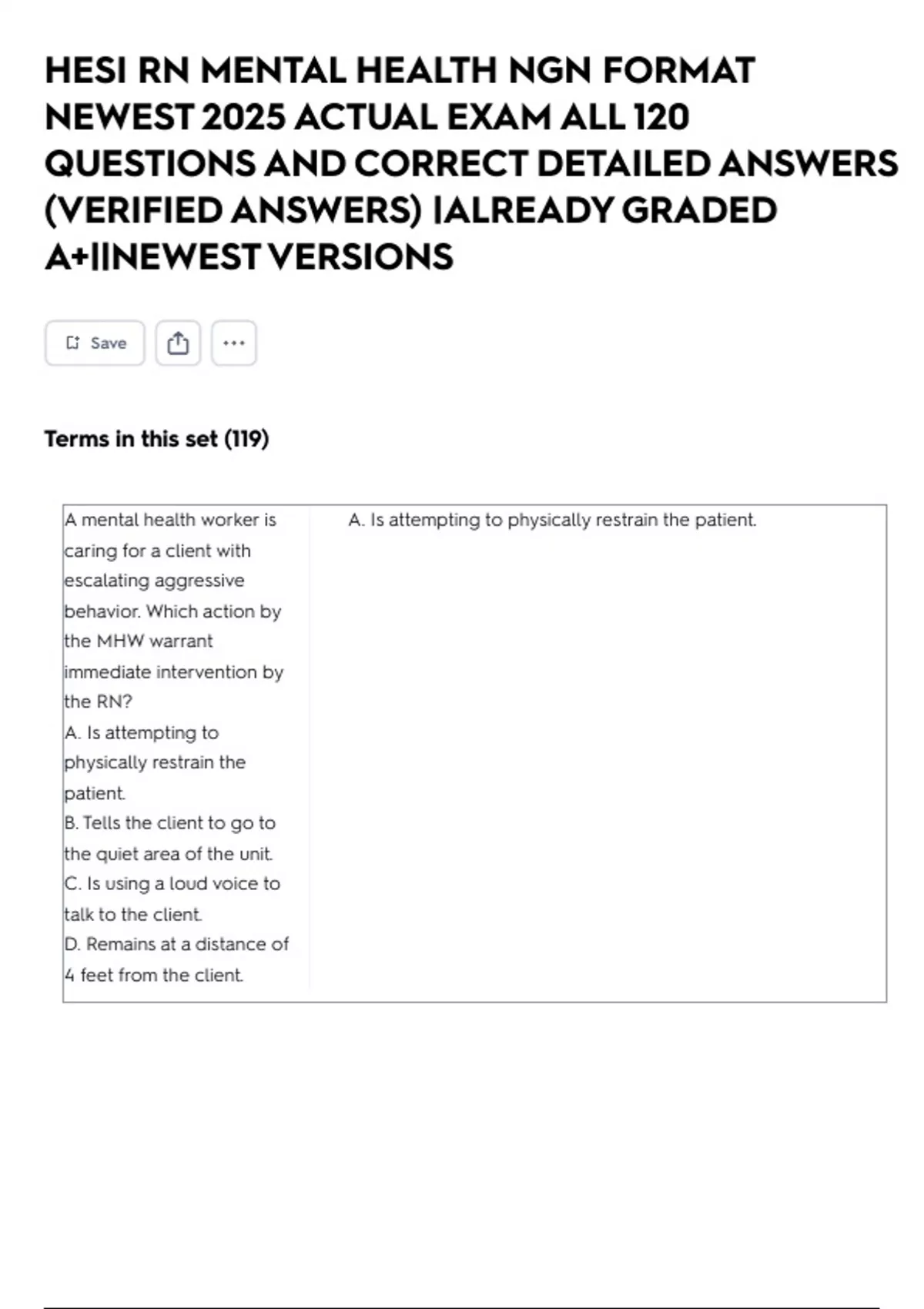 A mental health worker is A. Is attempting to physically restrain the patient.