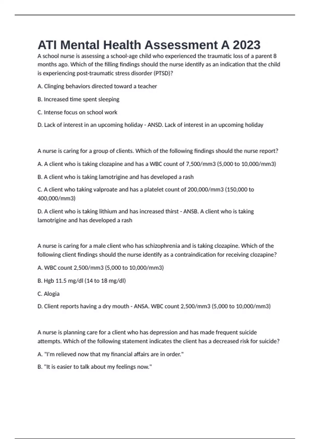 A school nurse is assessing a school-age child who experienced the traumatic loss of a parent 8