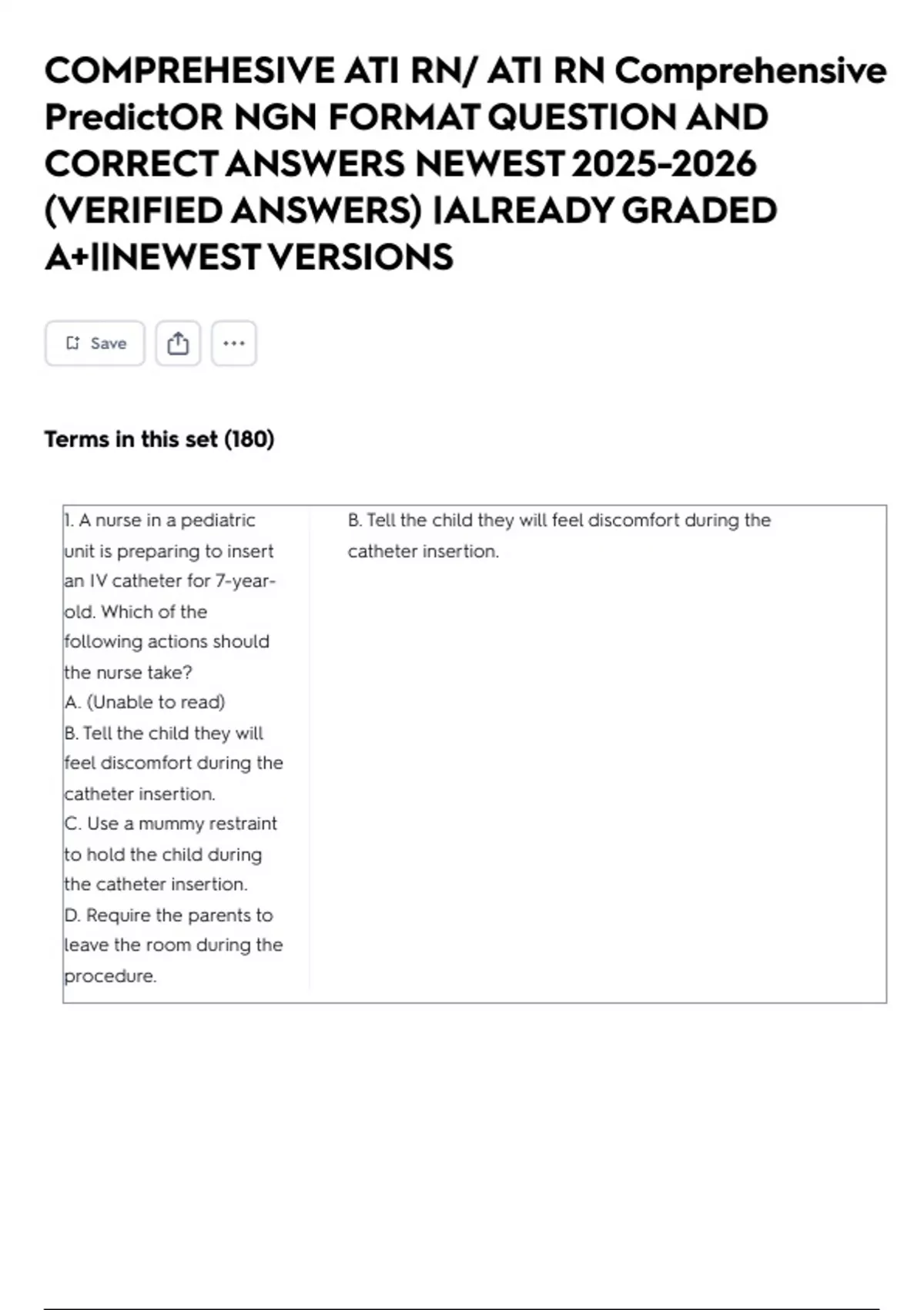 1. A nurse in a pediatric B. Tell the child they will feel discomfort during the