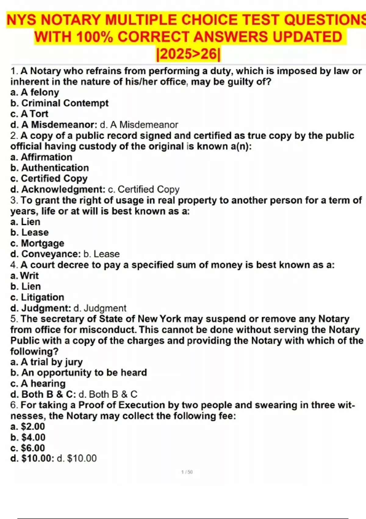 NYS NOTARY MULTIPLE CHOICE TEST QUESTIONS WITH 100% CORRECT ANSWERS UPDATED |2025>26|NYS NOTARY MULTIPLE CHOICE TEST QUESTIONS WITH 100% CORRECT ANSWERS UPDATED |2025>26|NYS NOTARY MULTIPLE CHOICE TEST QUESTIONS WITH 100% CORRECT ANSWERS UPDATED |2025>26|NYS NOTARY MULTIPLE CHOICE TEST QUESTIONS WITH 100% CORRECT ANSWERS UPDATED |2025>26|NYS NOTARY MULTIPLE CHOICE TEST QUESTIONS WITH 100% CORRECT ANSWERS UPDATED |2025>26|