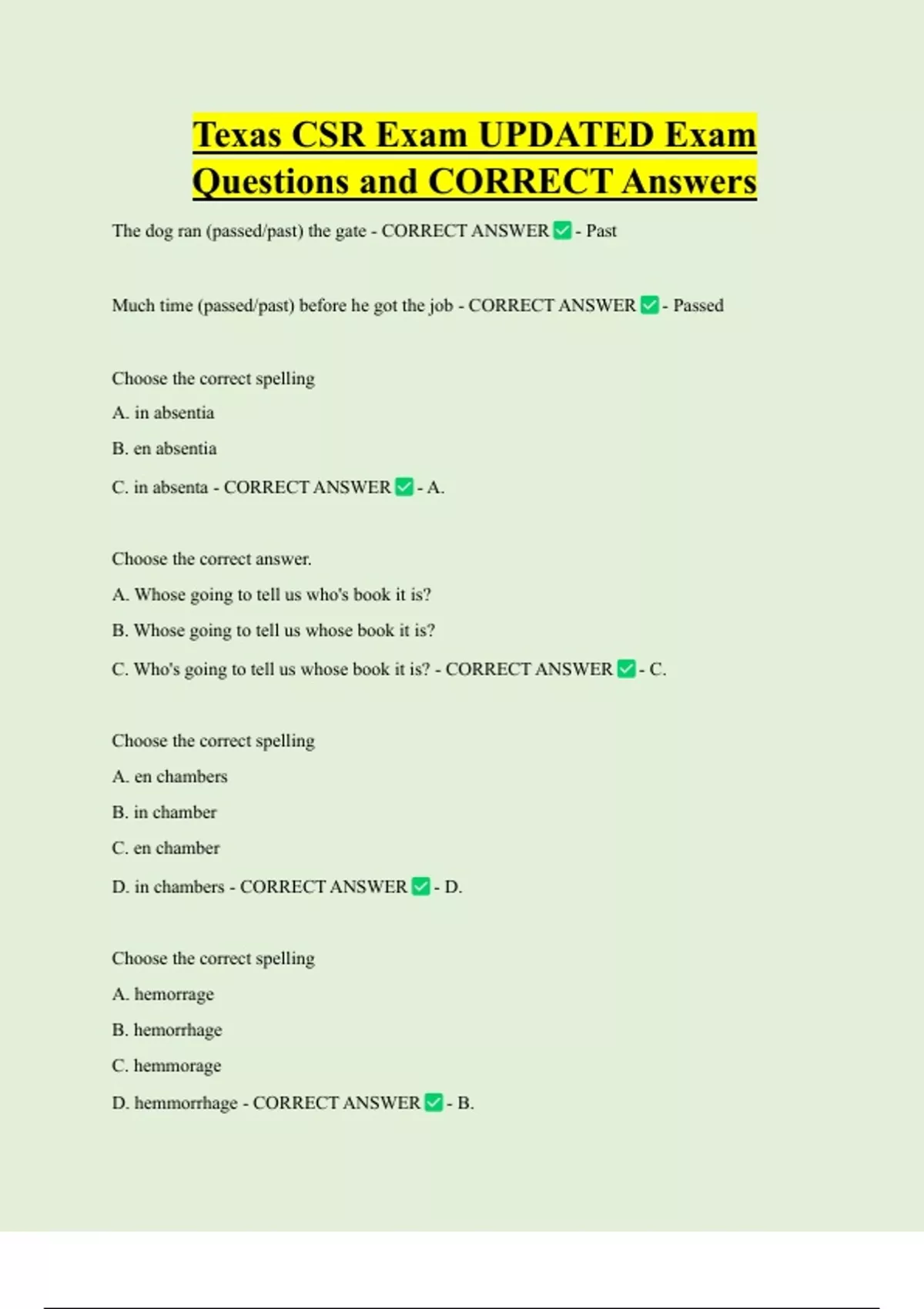 Questions and CORRECT Answers