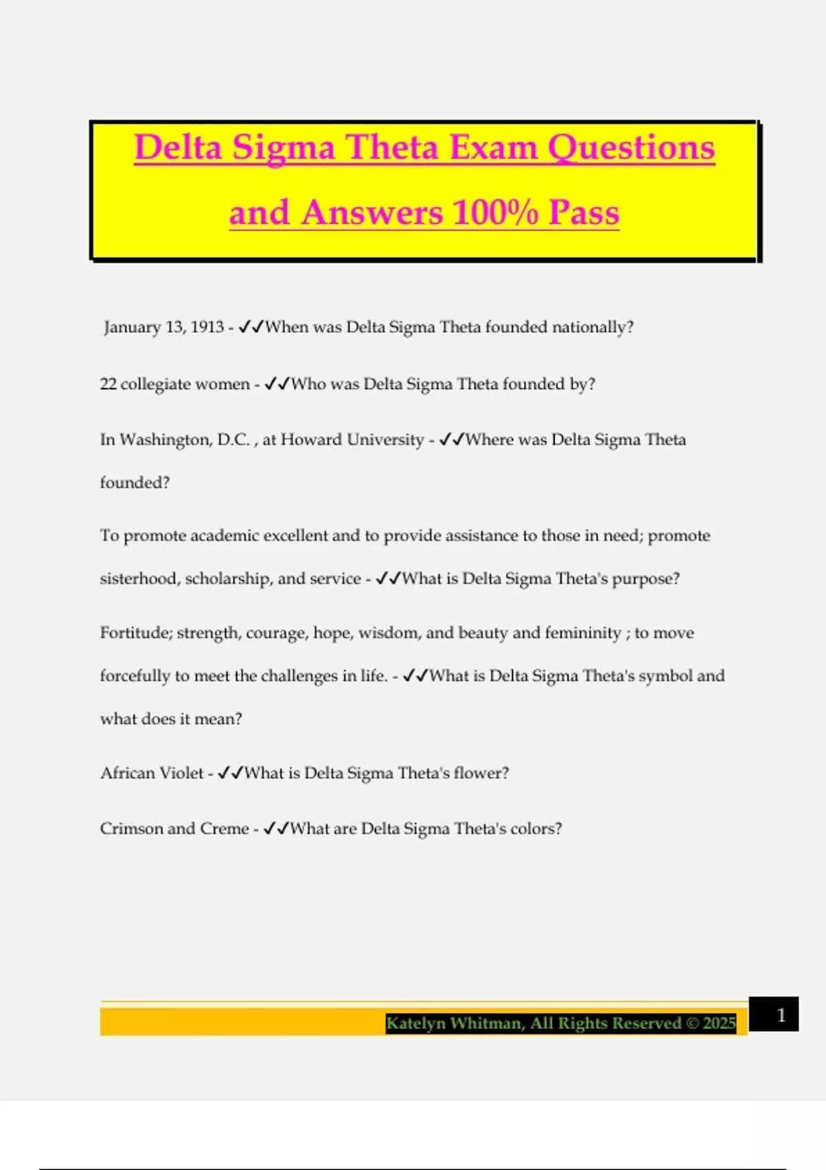 Delta Sigma Theta Exam Questions and Answers 100% Pass