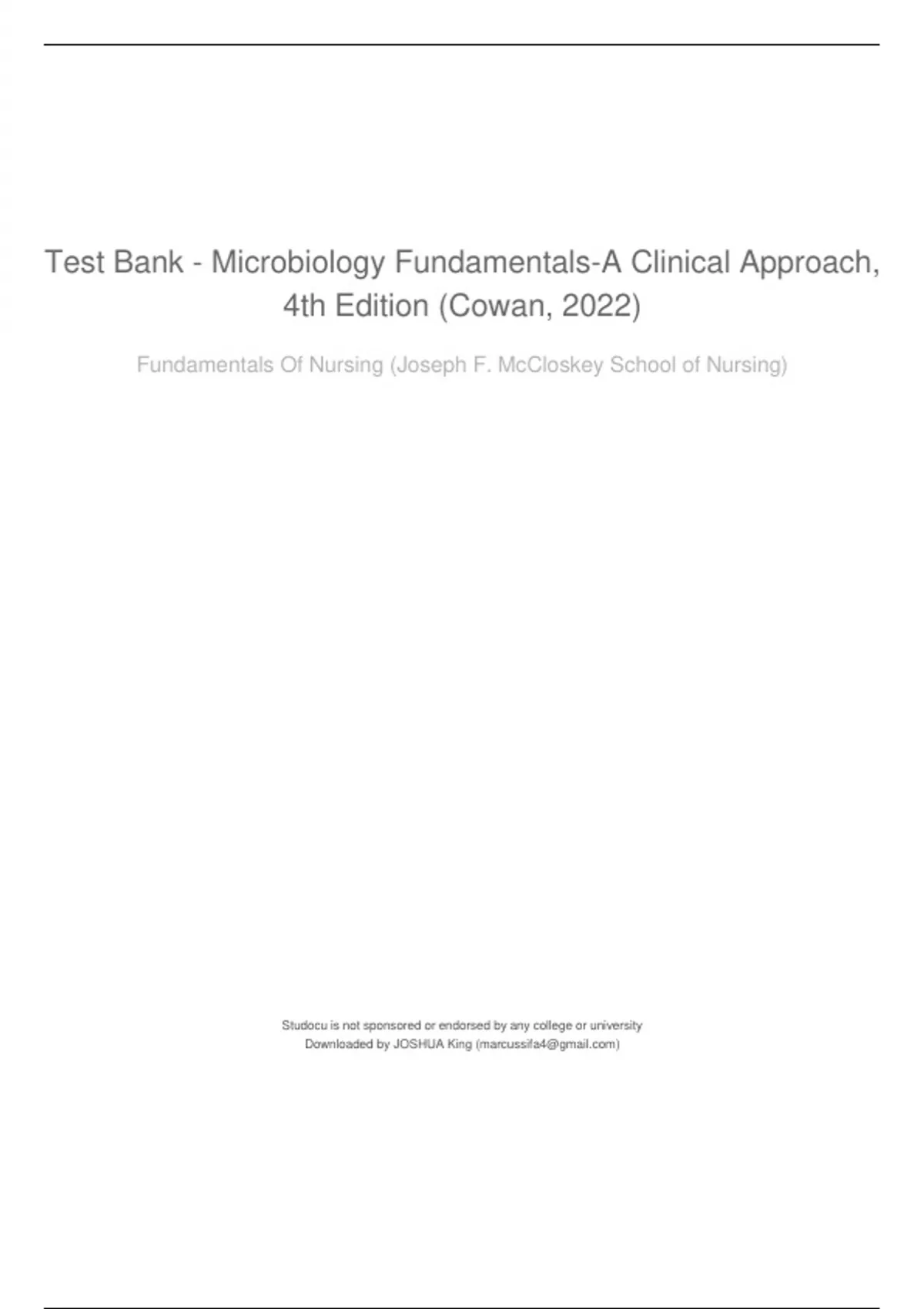 Test Bank - Microbiology Fundamentals-A Clinical Approach,