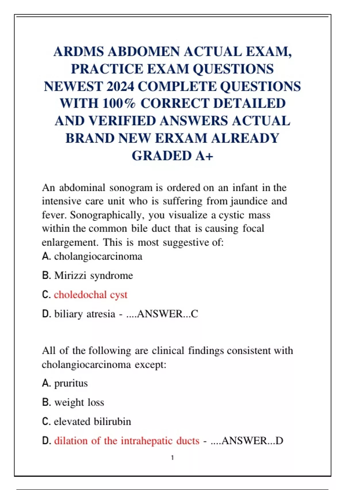 ARDMS ABDOMEN ACTUAL EXAM, PRACTICE EXAM QUESTIONS NEWEST 2024 COMPLETE QUESTIONS WITH 100% CORRECT DETAILED AND VERIFIED ANSWERS ACTUAL BRAND NEW ERXAM ALREADY GRADED A+