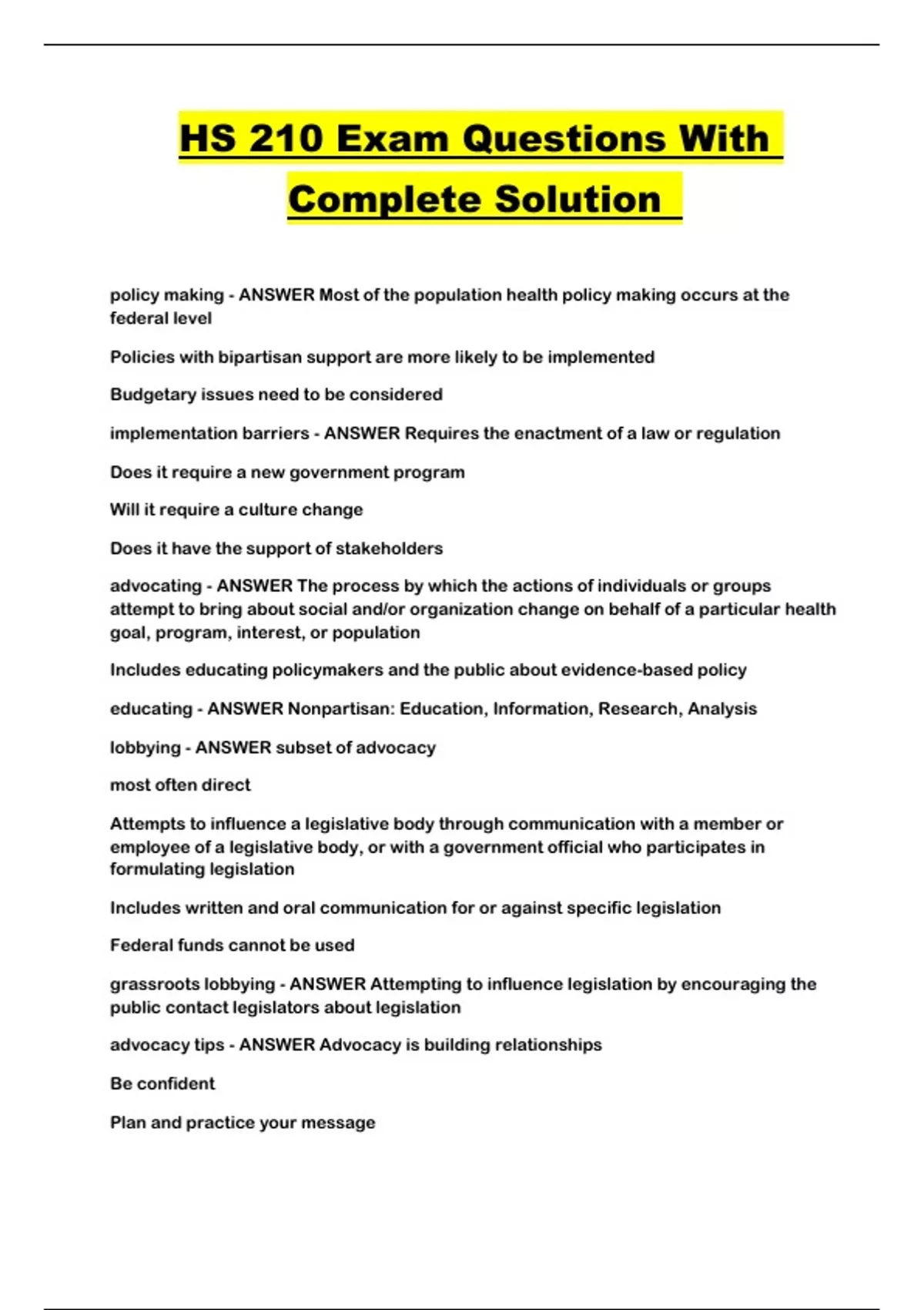 HS 210 Exam Questions With Complete Solution ...