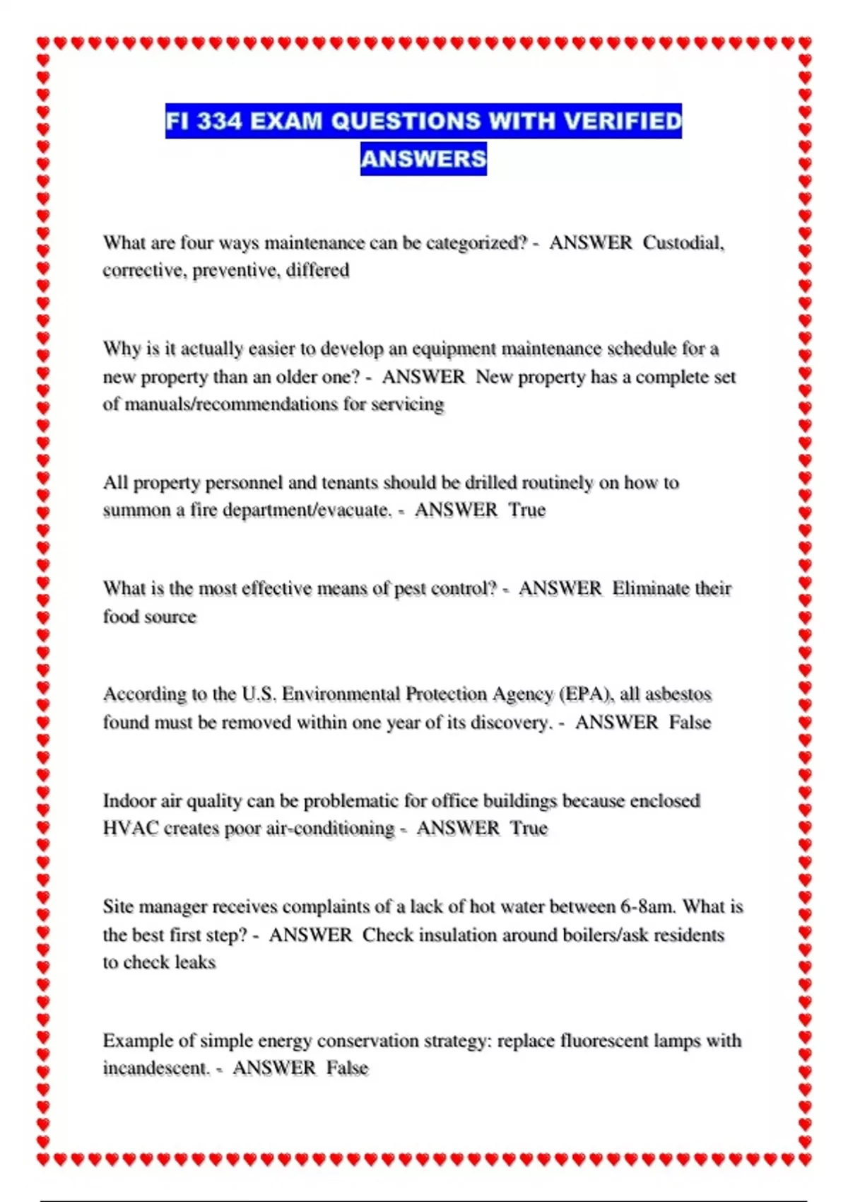 FI 334 EXAM QUESTIONS WITH VERIFIED ANSWERS