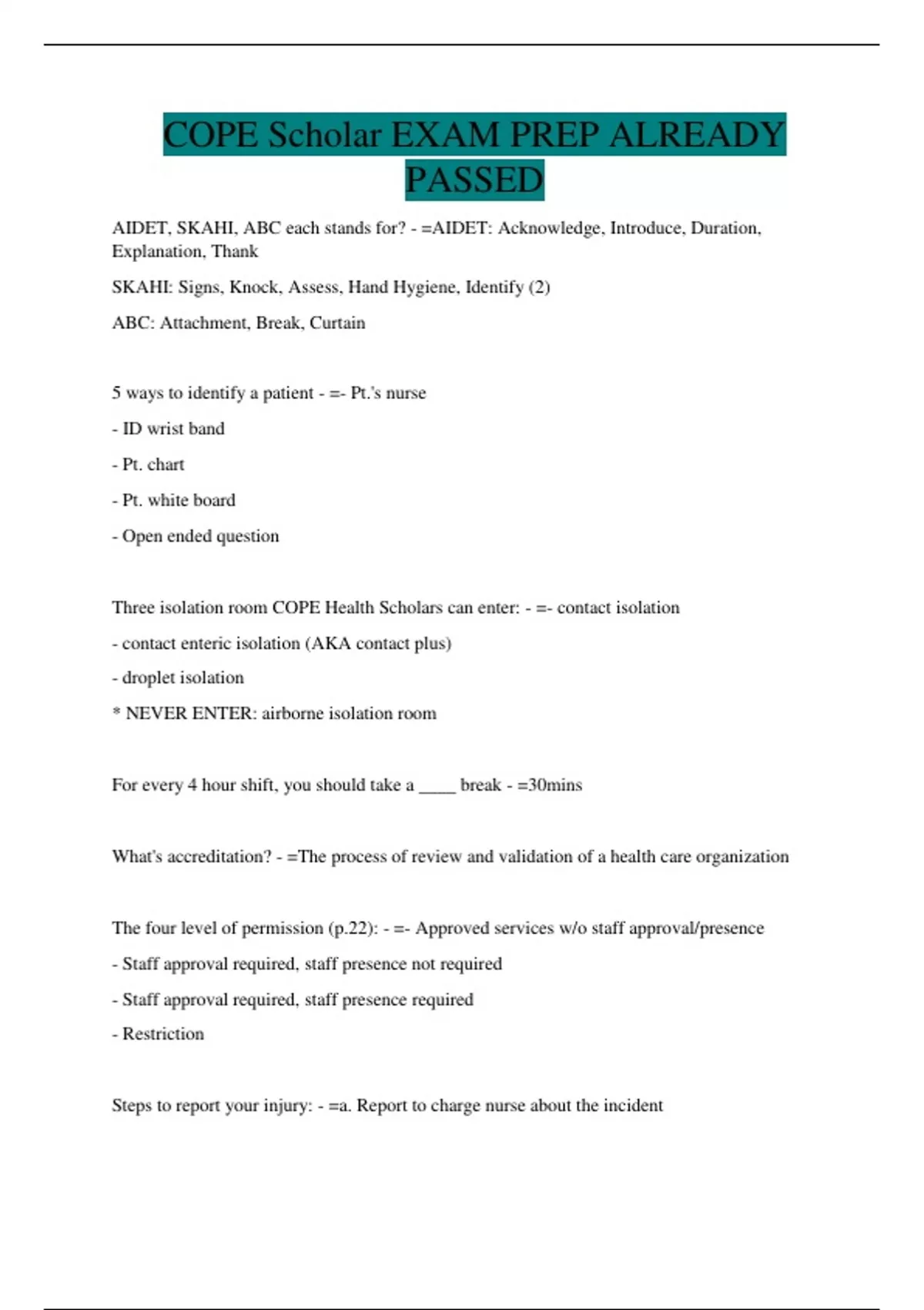 AIDET, SKAHI, ABC each stands for? - =AIDET: Acknowledge, Introduce, Duration,