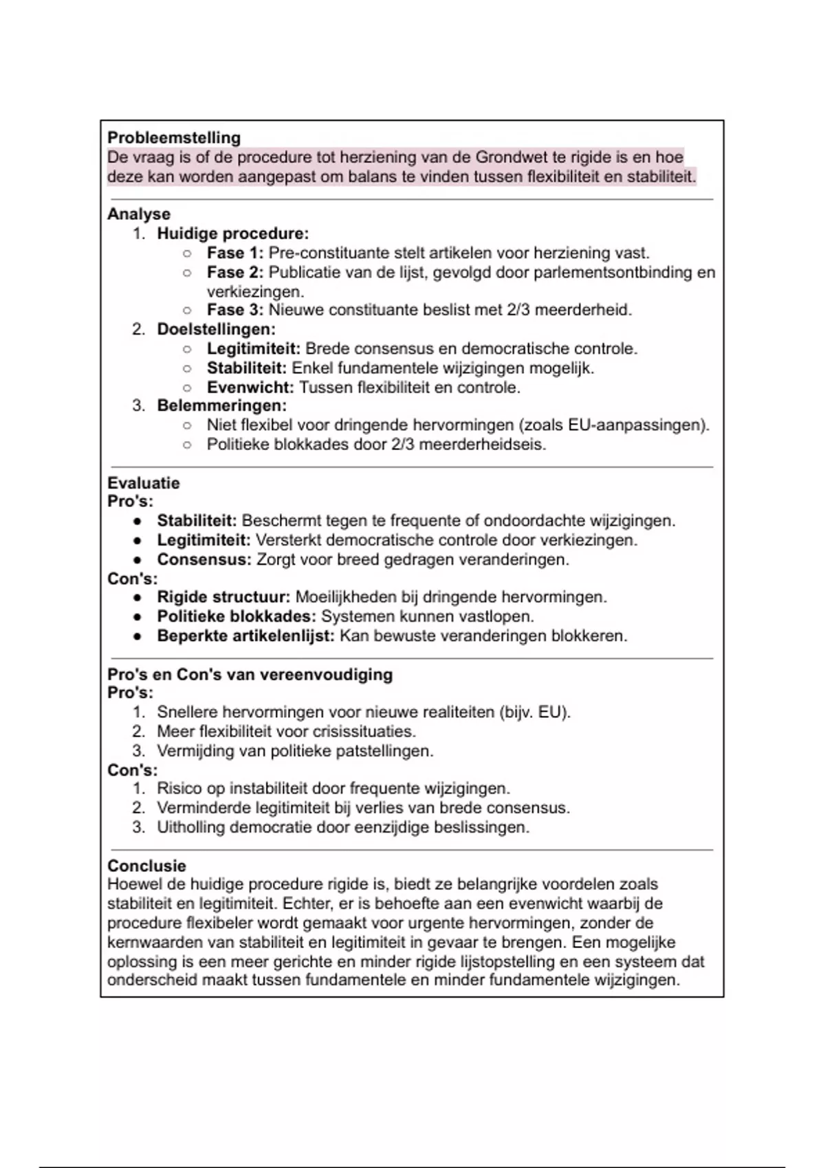 Een duidelijk gestructureerd antwoord op elke discussievraag volgens de structuur die de prof graag wil zien op het examen. Makkelijk vanbuiten te leren aan de hand van deze structuur.