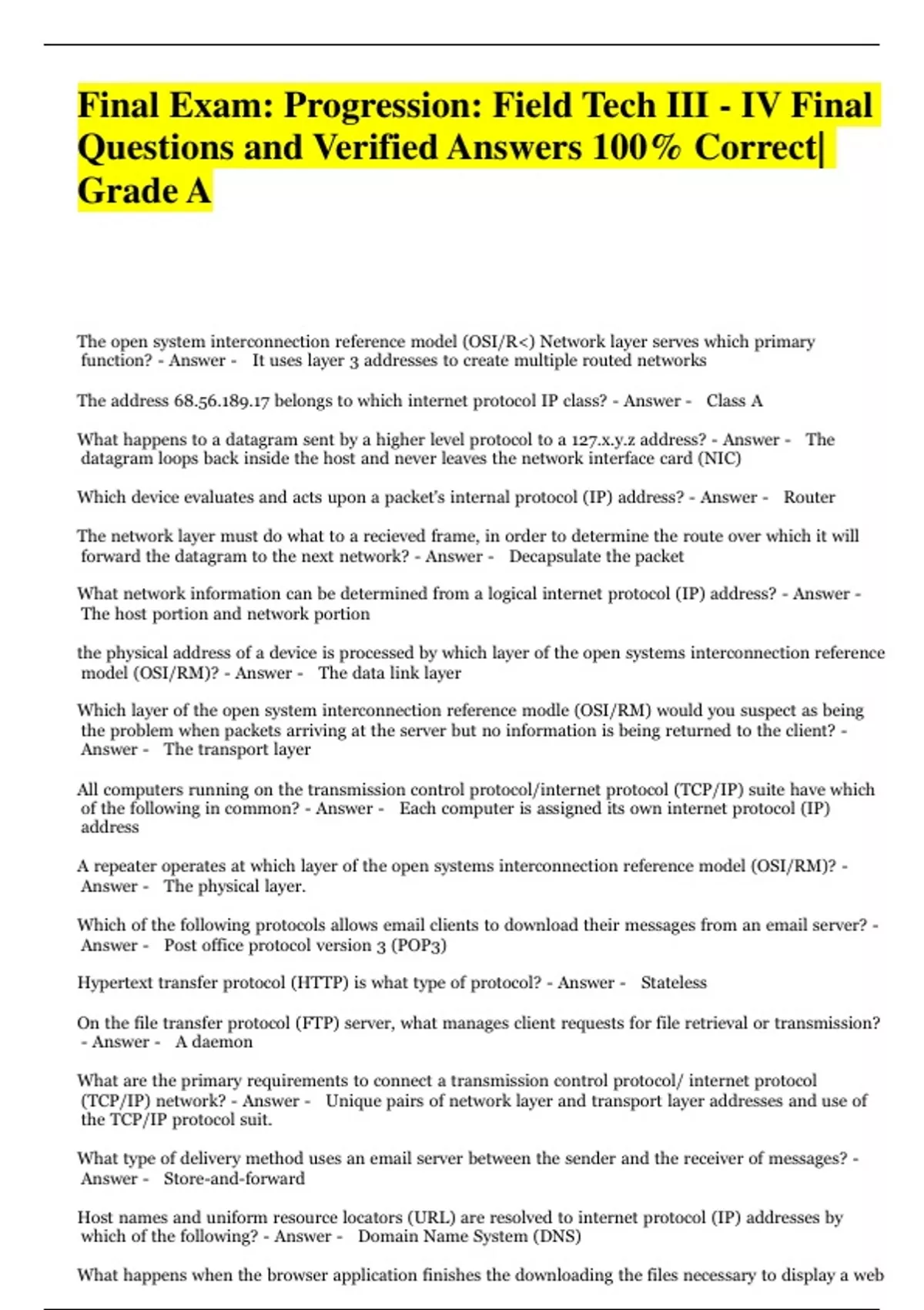 Final Exam: Progression: Field Tech III - IV Final
