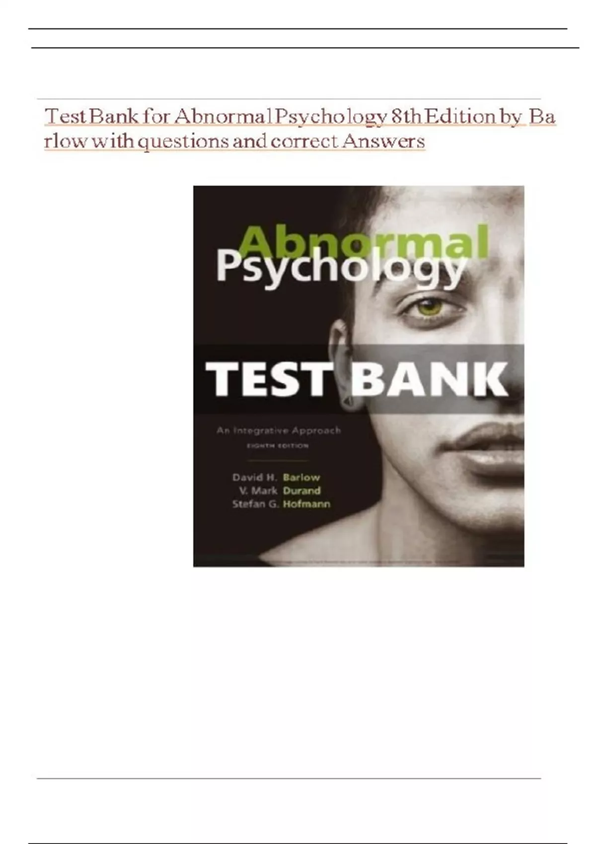 Test Bank for Abnormal Psychology 8th Edition By Barlow Complete (All-Chapters) Complete Solution.