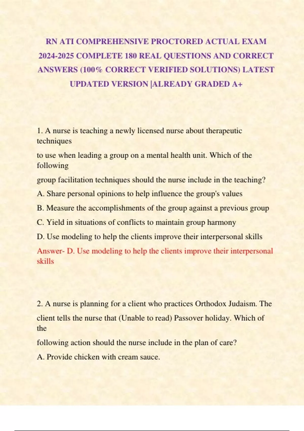 2024-2025 COMPLETE 180 REAL QUESTIONS AND CORRECT