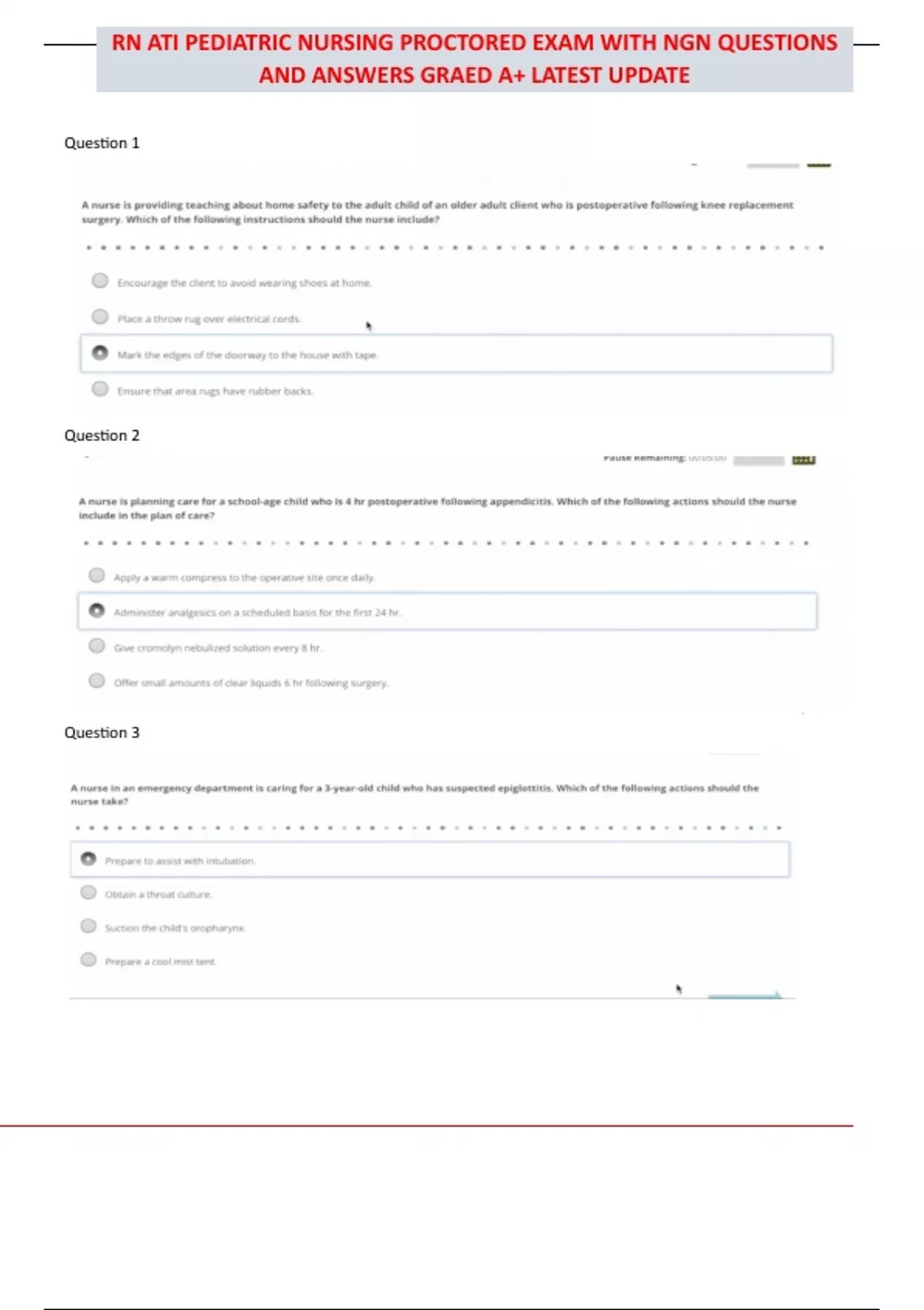 ATI RN PEDIATRICS PROCTORED EXAM QUESTION AND ANSWERS GRADED A+ RN PEDIATRICS RN PEDIATRICS PROCTORED RN PEDIATRIC QUIZLET
