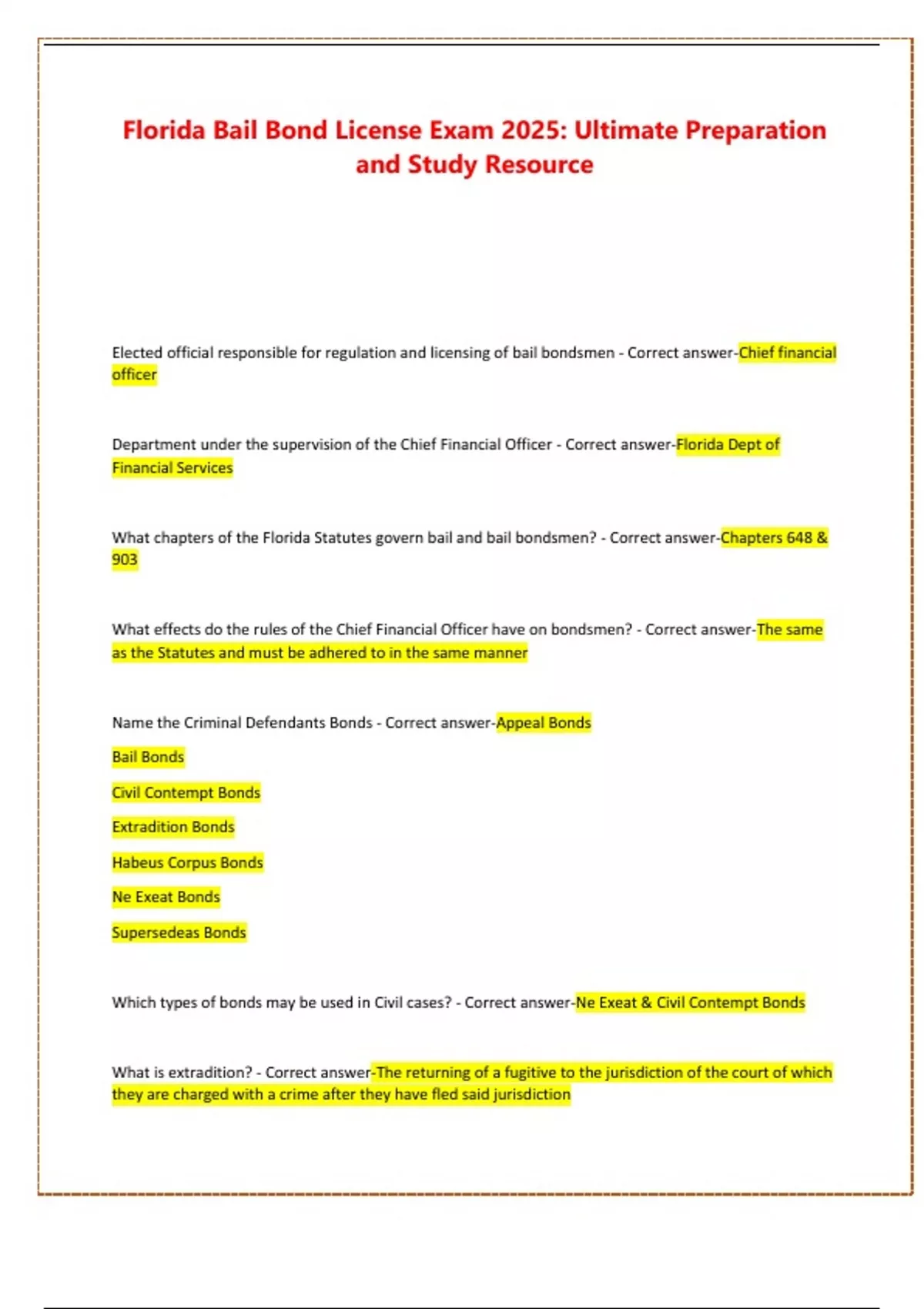 Which types of bonds may be used in Civil cases? - Correct answer-Ne Exeat & Civil Contempt Bonds