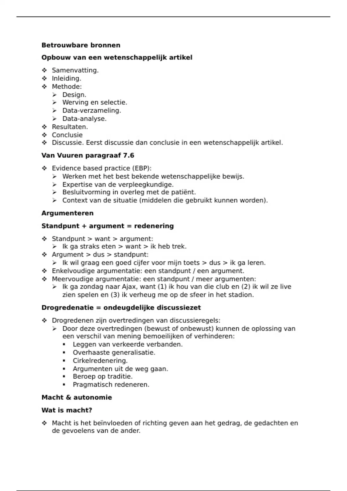 Standpunt > want > argument: