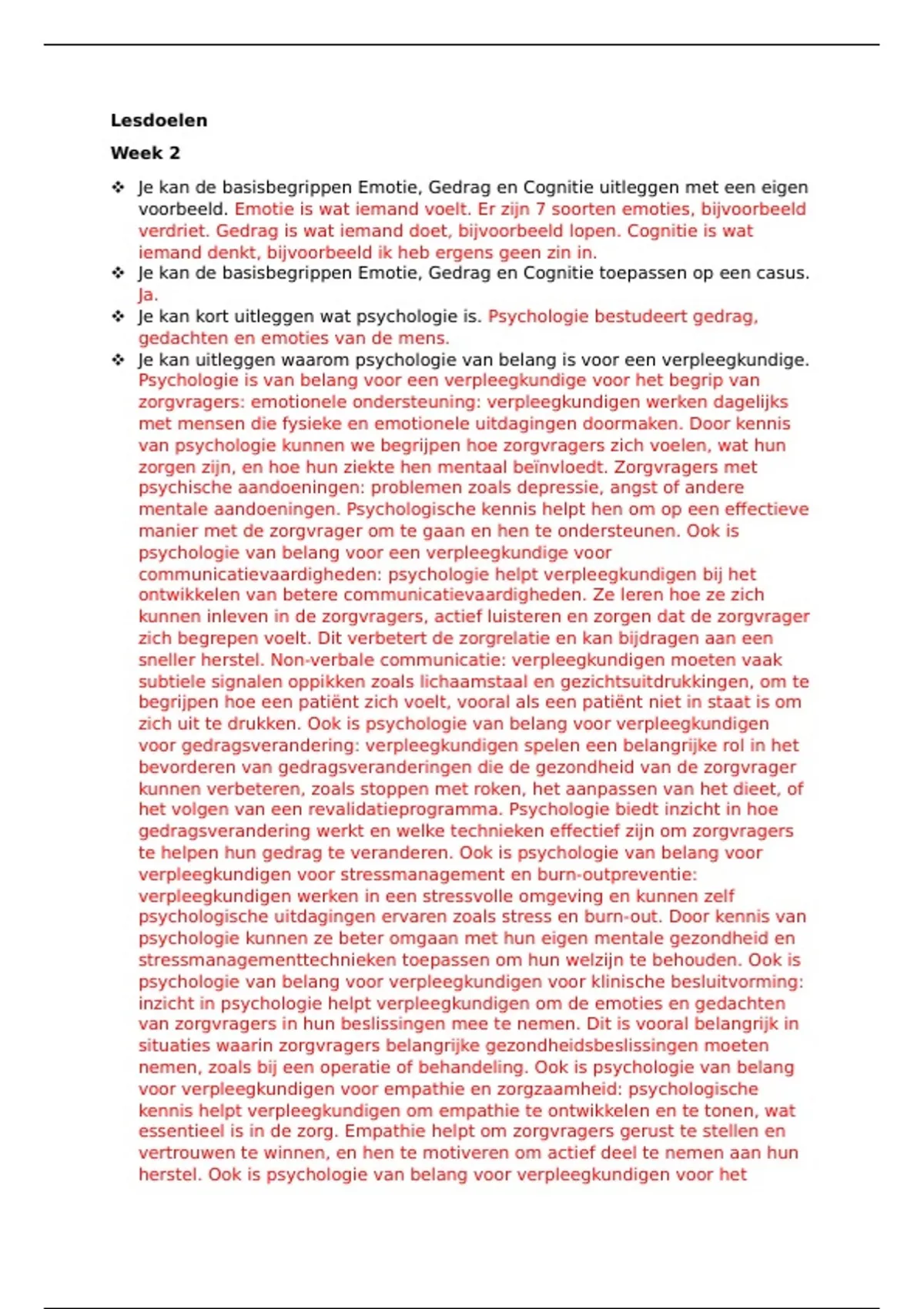 Je kan uitleggen waarom psychologie van belang is voor een verpleegkundige.