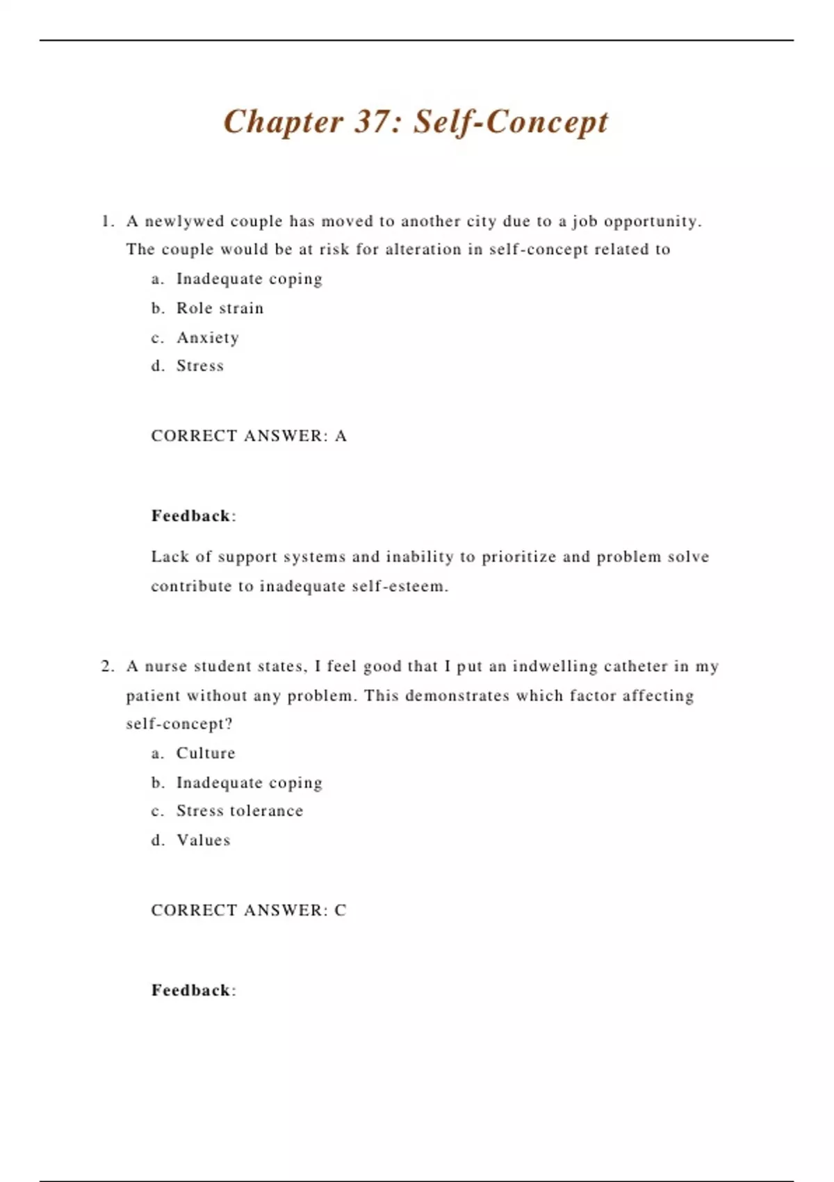 2. A nurse student states, I feel good that I p ut an indwelling catheter in m y