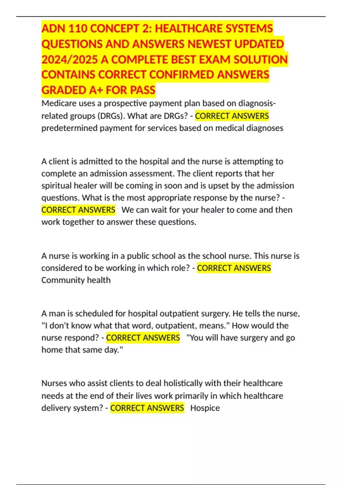 , ADN 110 CONCEPT 2: HEALTHCARE SYSTEMS