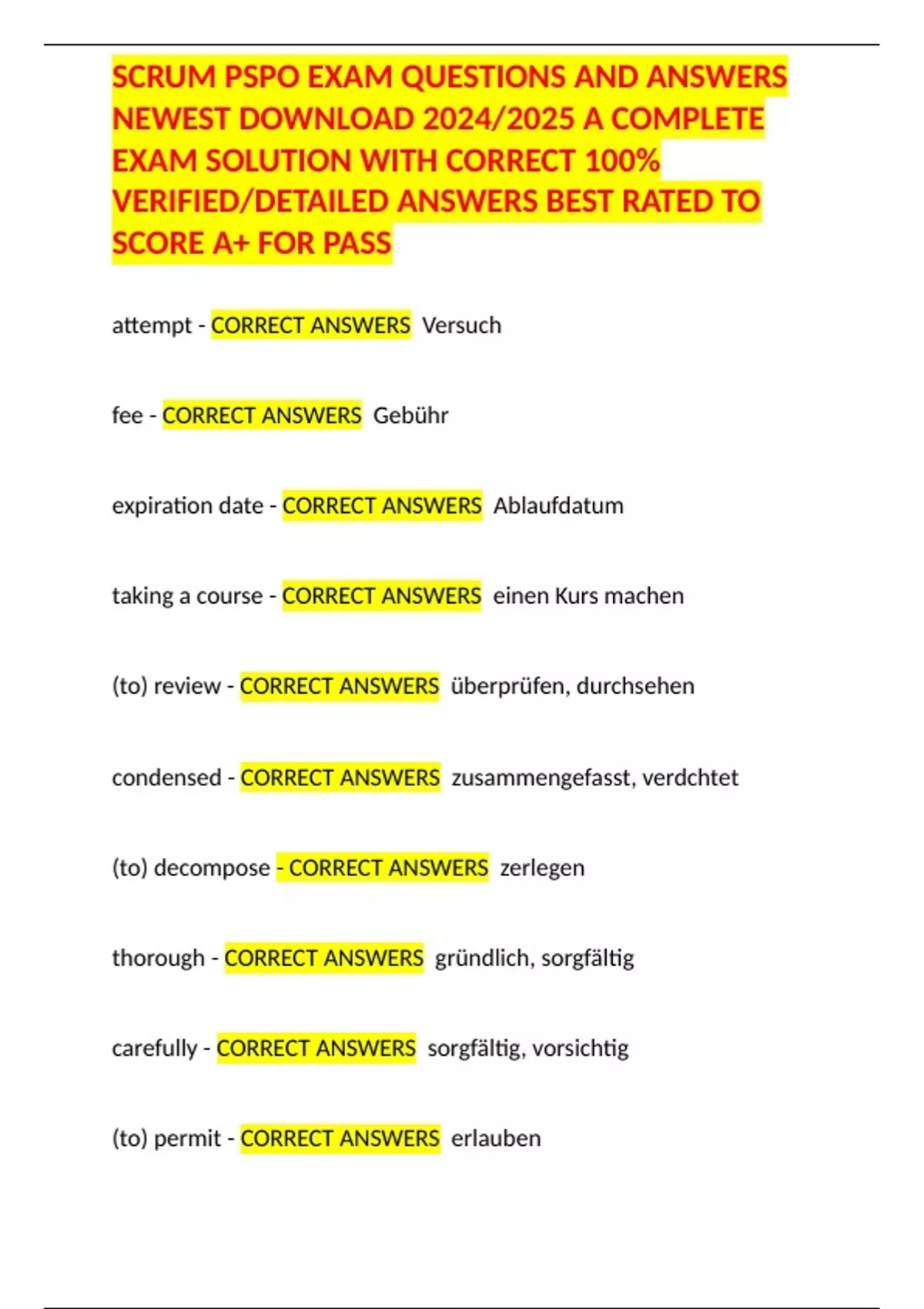 SCRUM PSPO EXAM QUESTIONS AND ANSWERS NEWEST DOWNLOAD 2024/2025 A COMPLETE EXAM SOLUTION WITH CORRECT 100% VERIFIED/DETAILED ANSWERS BEST RATED TO SCORE A+ FOR PASS