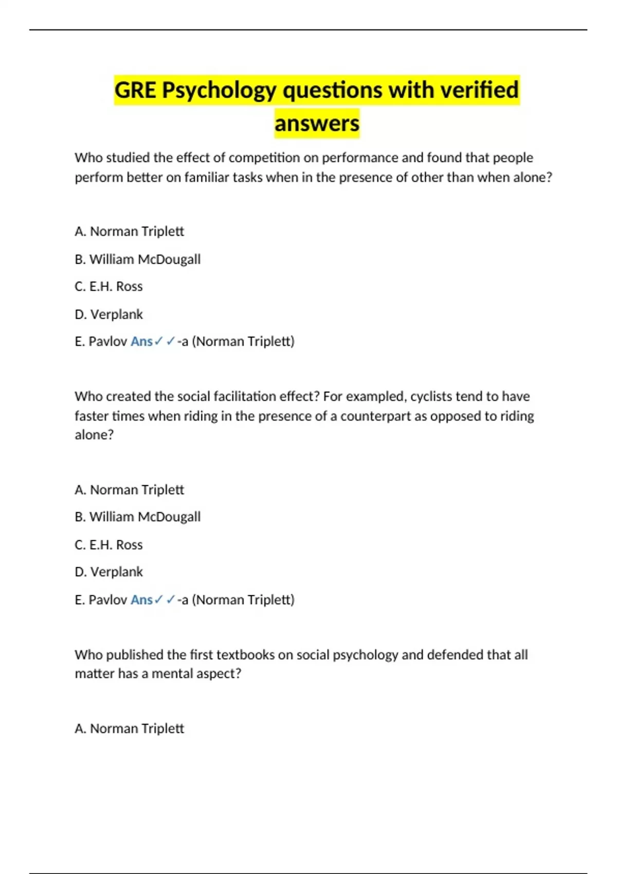 E. Pavlov Ans✓✓-a (Norman Triplett)