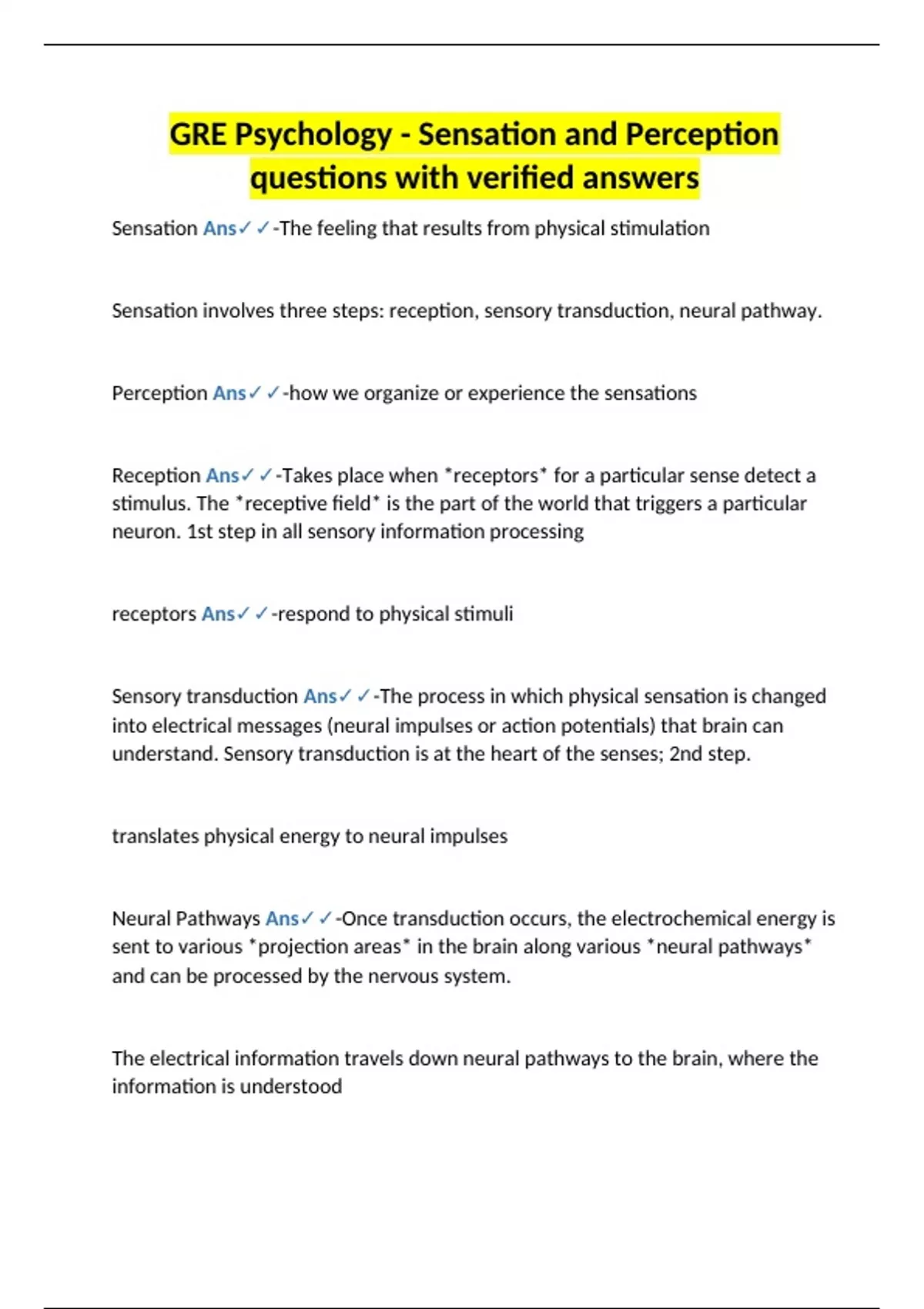 Reception Ans✓✓-Takes place when *receptors* for a particular sense detect a