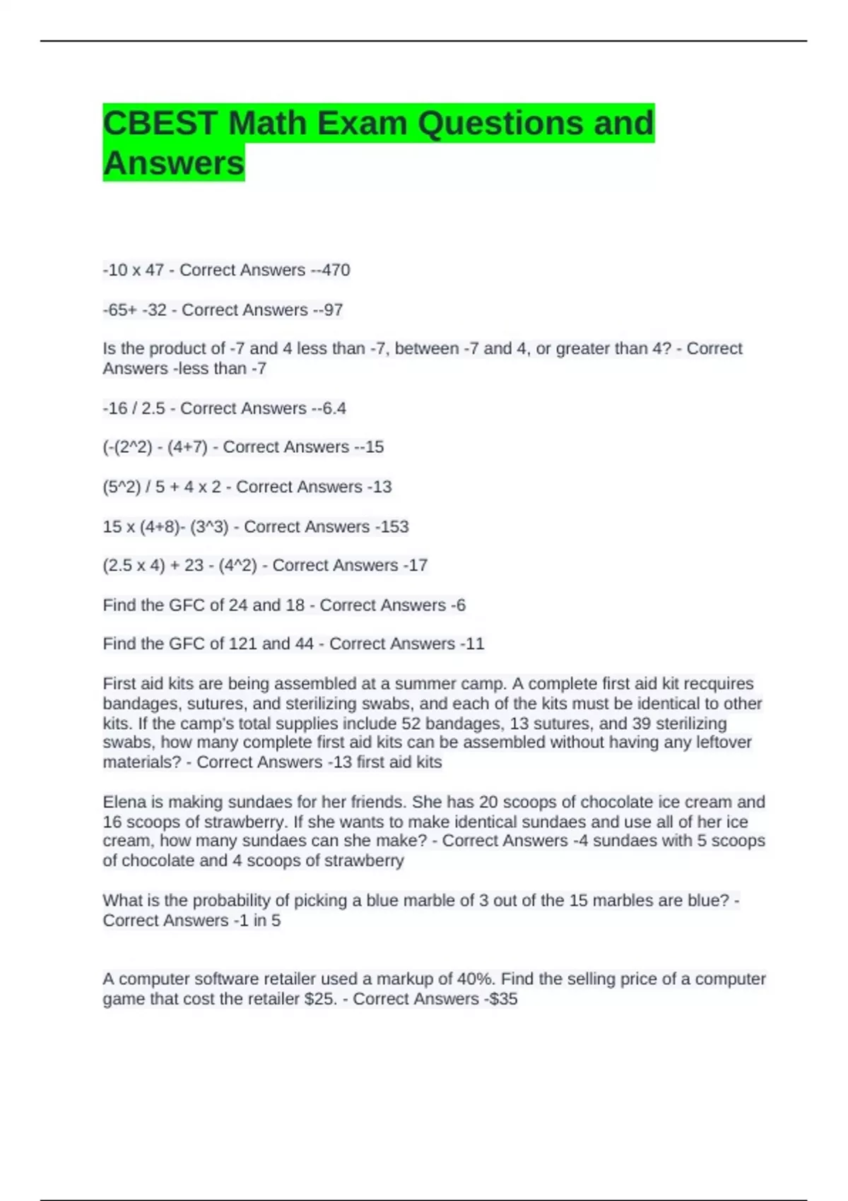 (2.5 x 4) + 23 - (4^2) - Correct Answers -17