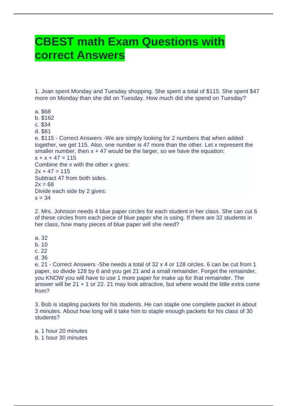 1. Joan spent Monday and Tuesday shopping. She spent a total of $115. She spent $47