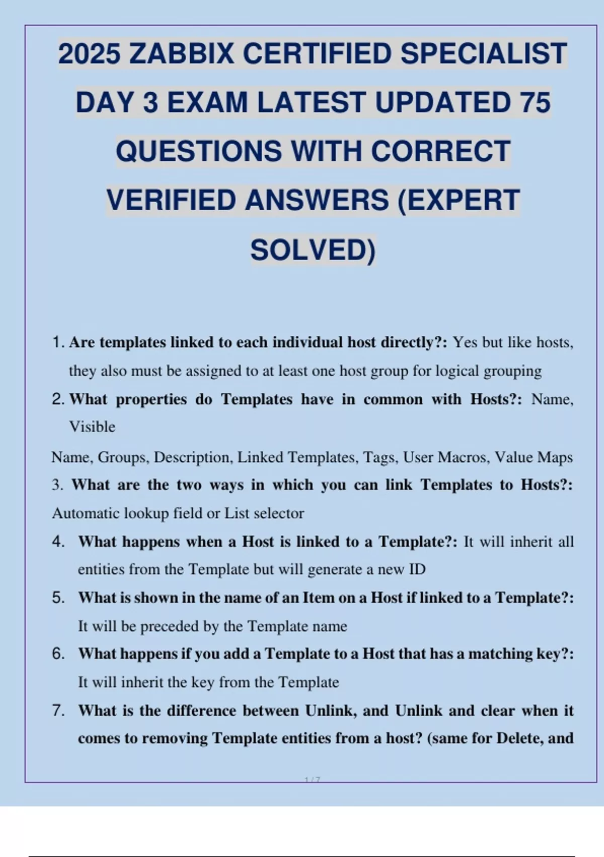 2025 ZABBIX CERTIFIED SPECIALIST DAY 3 EXAM LATEST UPDATED 75 QUESTIONS WITH CORRECT VERIFIED ANSWERS (EXPERT SOLVED).