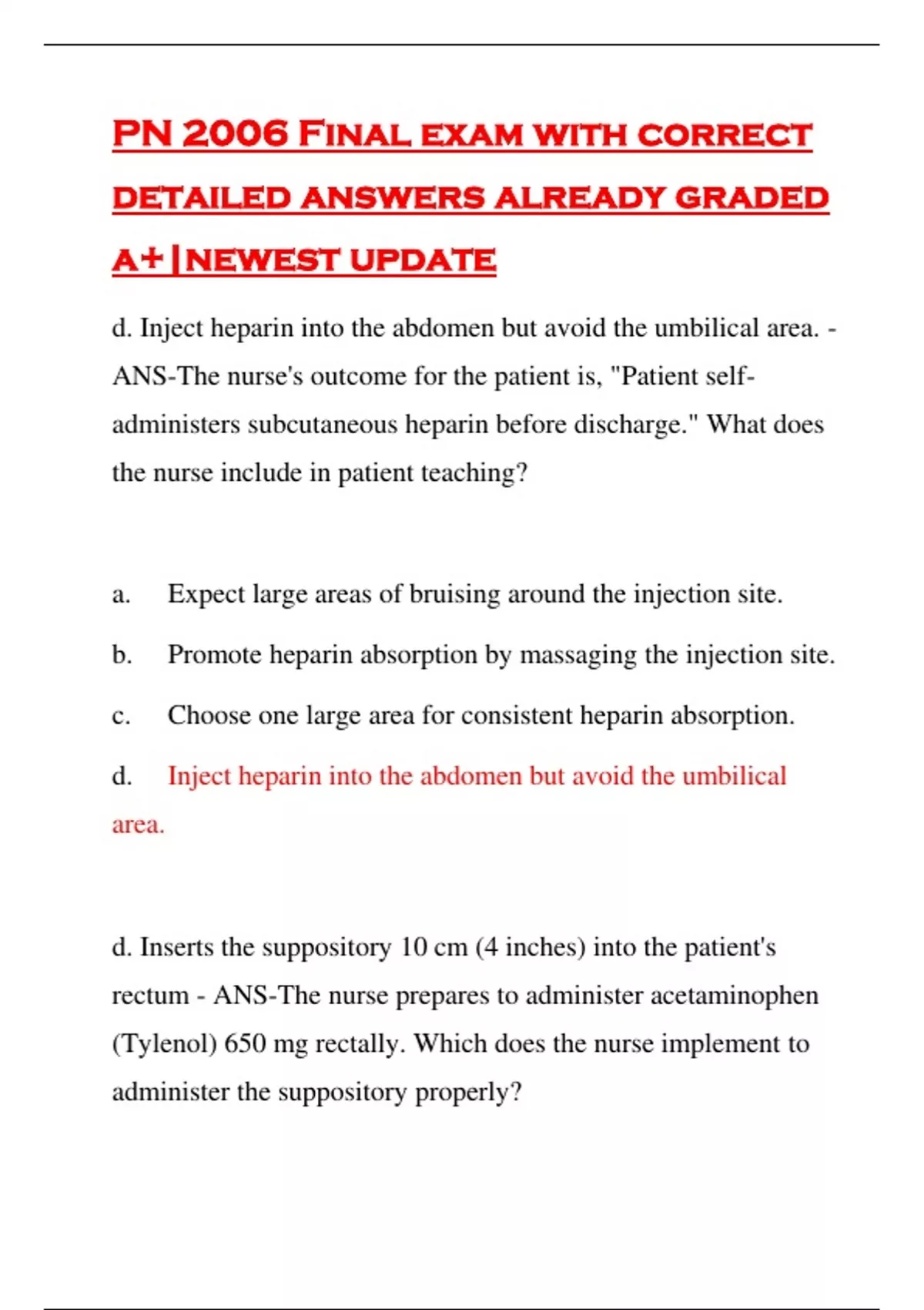 d. Inject heparin into the abdomen but avoid the umbilical area. -