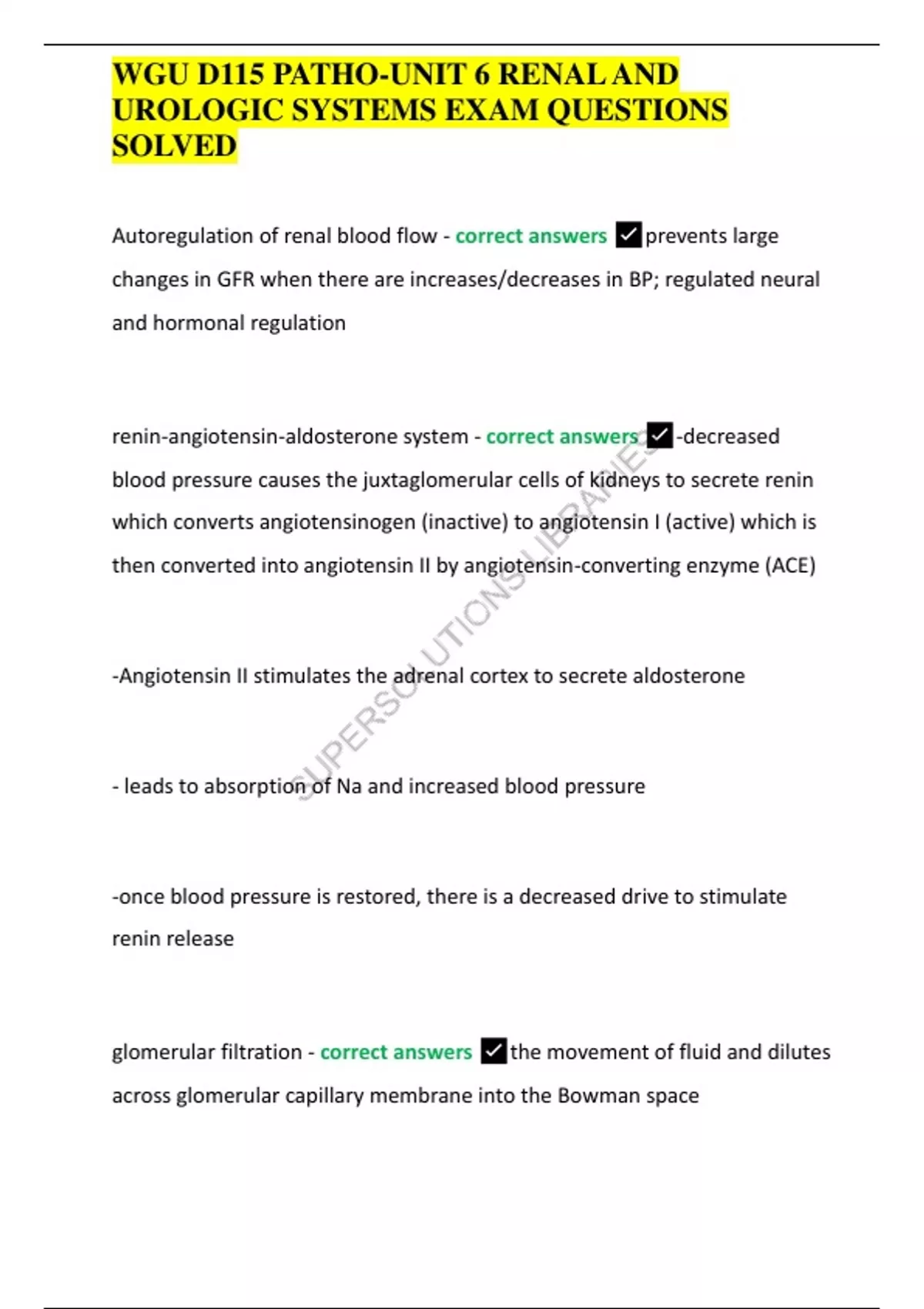 WGU D115 PATHO-UNIT 6 RENAL AND