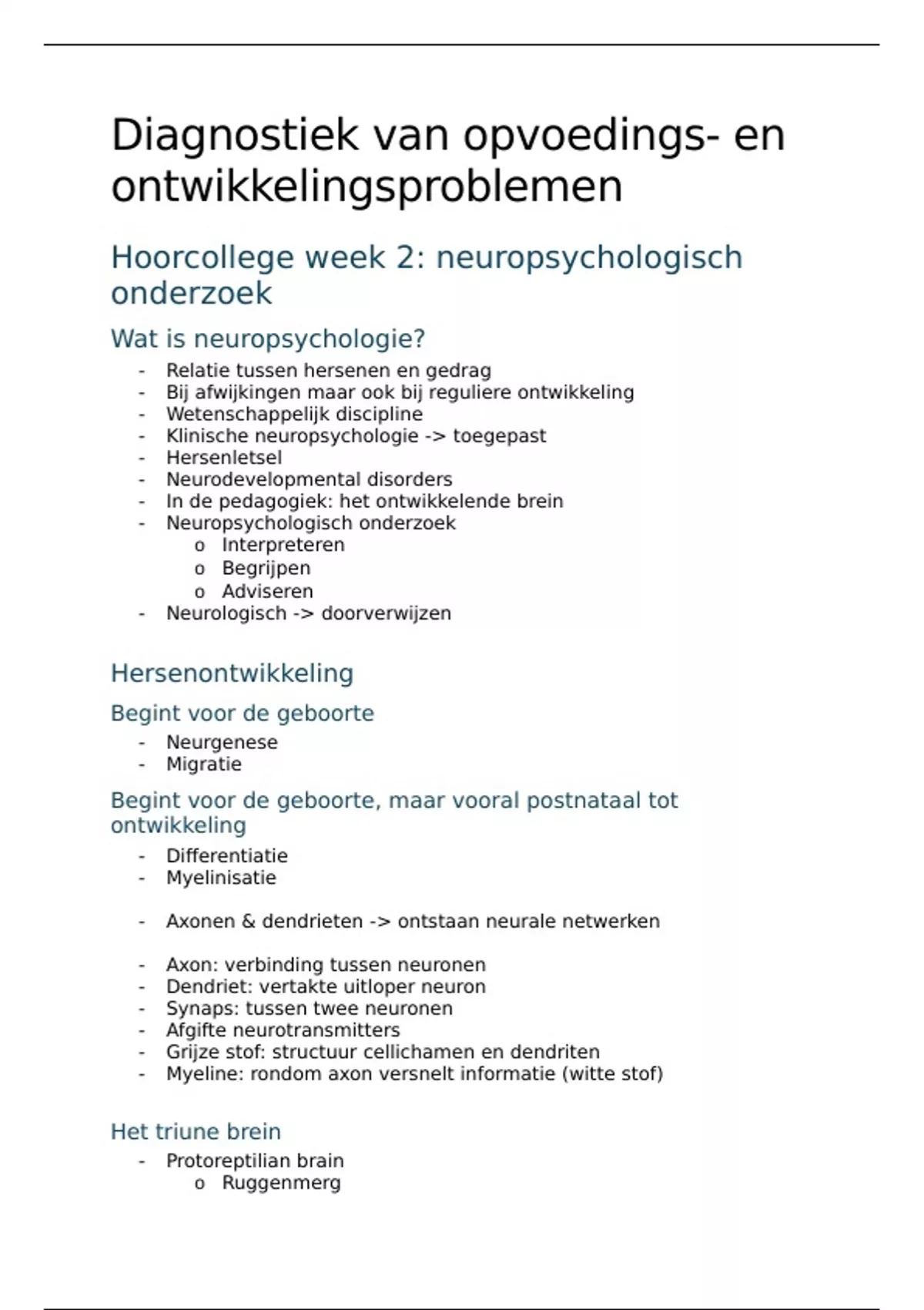 Hoorcollege week 2: neuropsychologisch