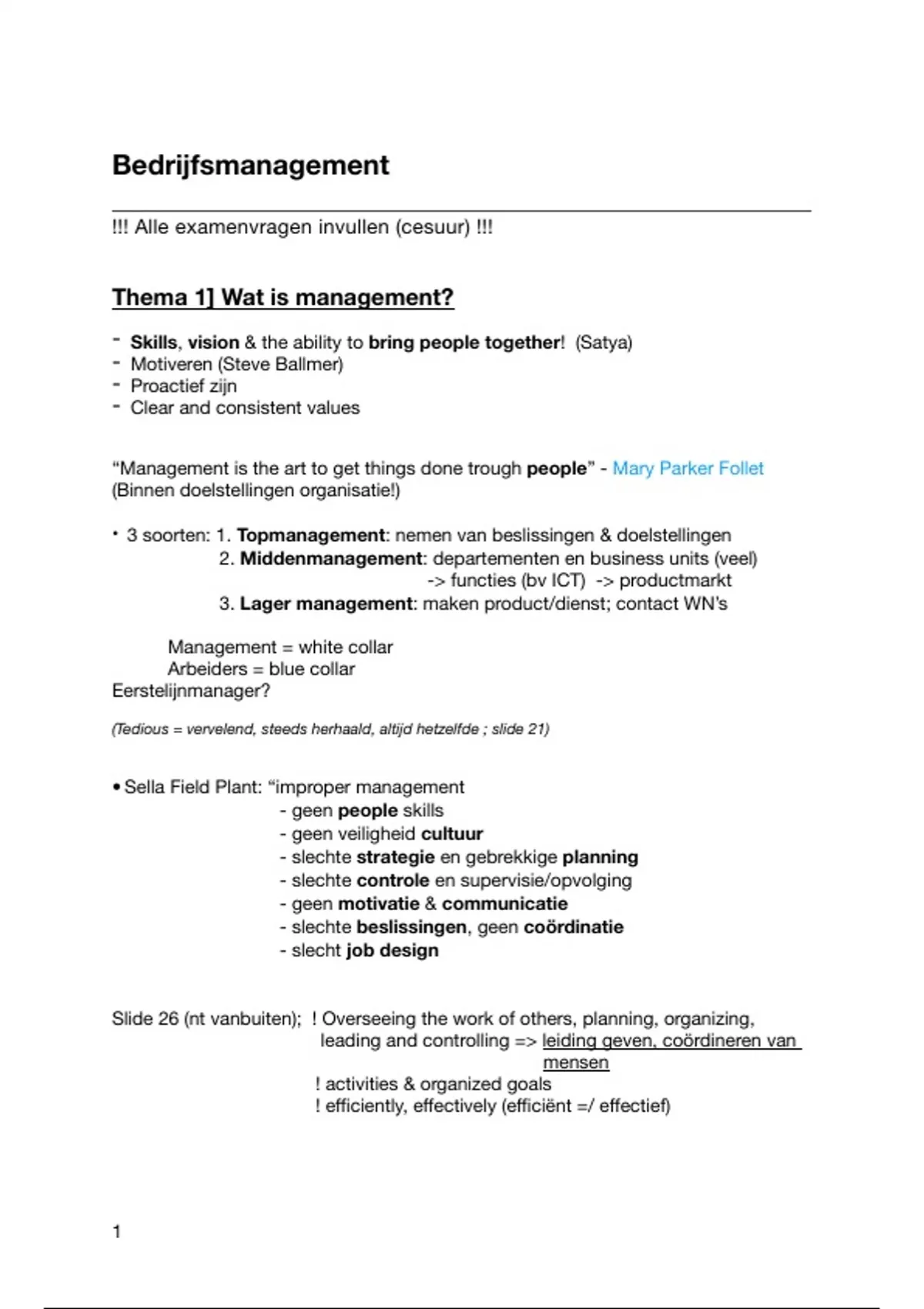 • 3 soorten: 1. Topmanagement: nemen van beslissingen & doelstellingen