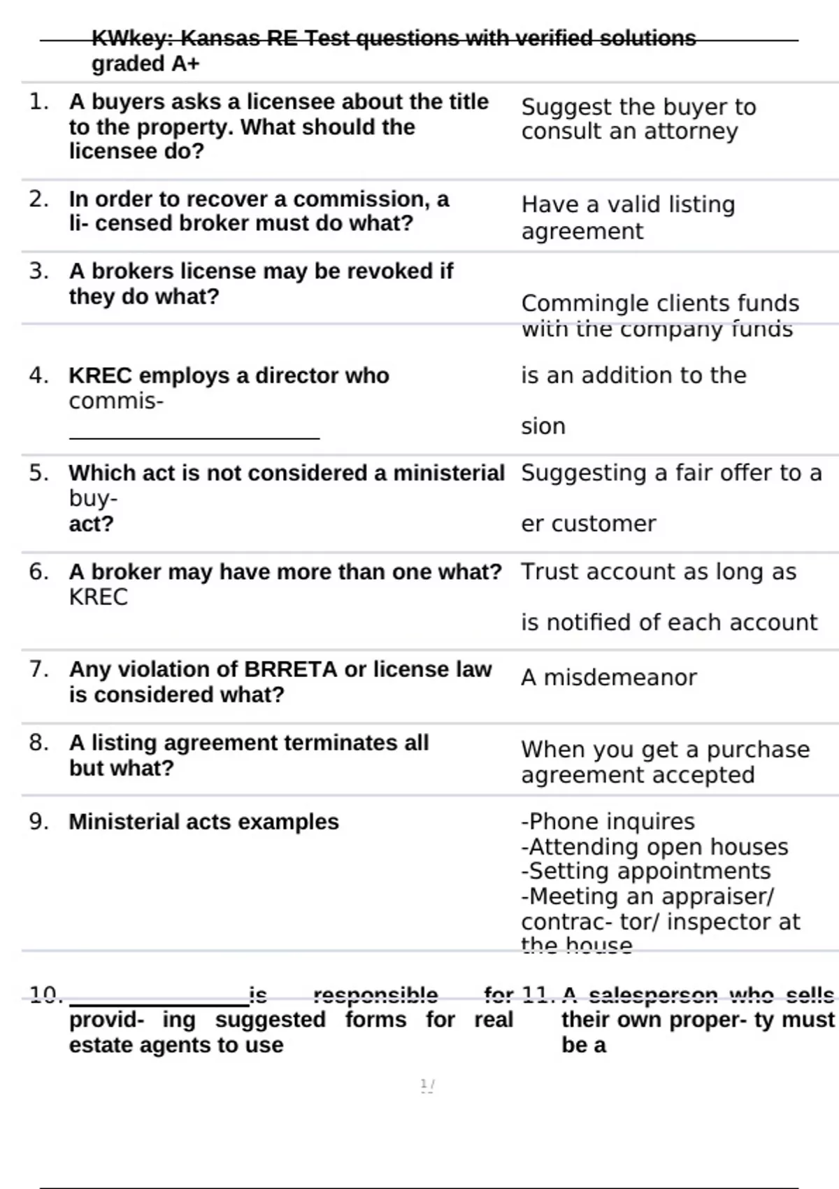 1. A buyers asks a licensee about the title Suggest the buyer to