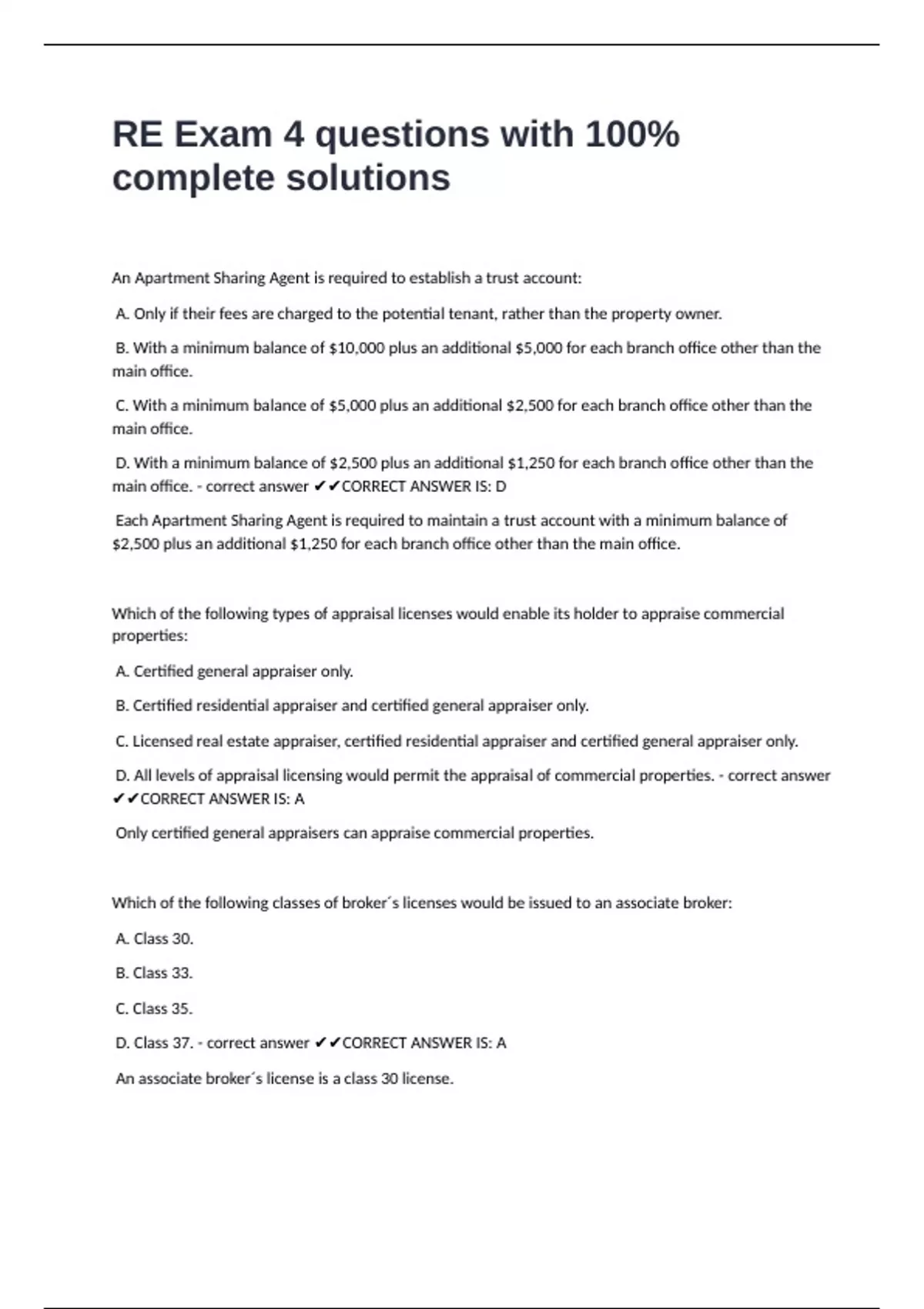 D. All levels of appraisal licensing would permit the appraisal of commercial properties. - correct answer