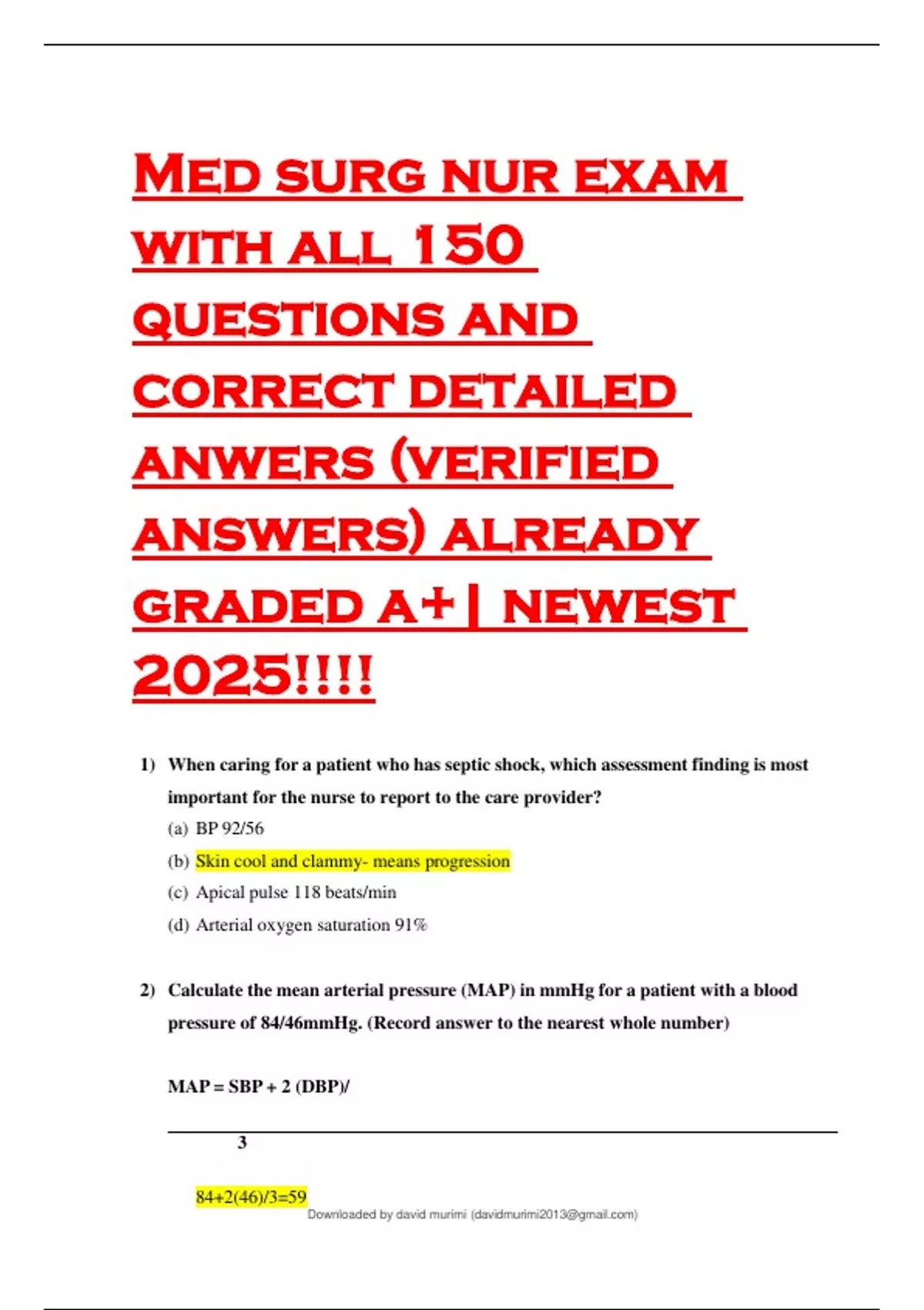 Med surg nur exam