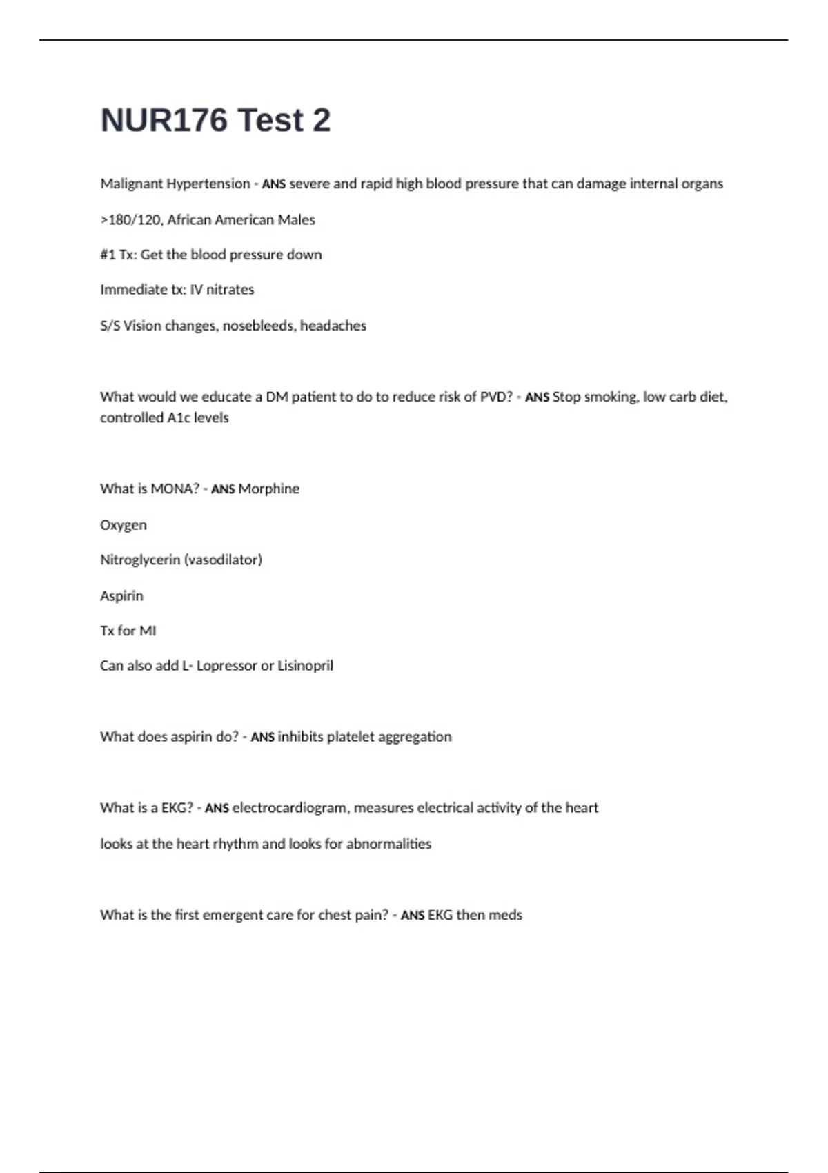 What is the first emergent care for chest pain? - ANS EKG then meds