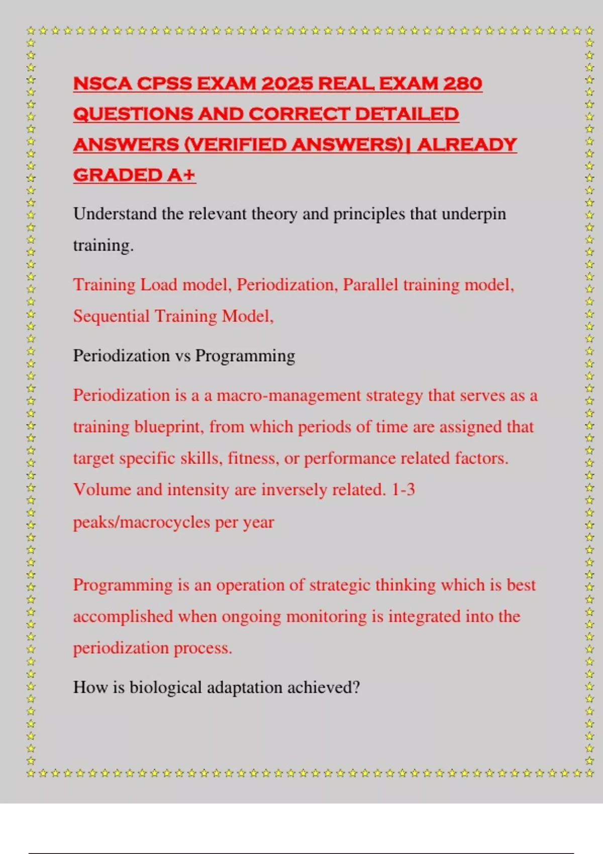 NSCA CPSS EXAM 2025 REAL EXAM 280 QUESTIONS AND CORRECT DETAILED ANSWERS (VERIFIED ANSWERS)| ALREADY GRADED A+