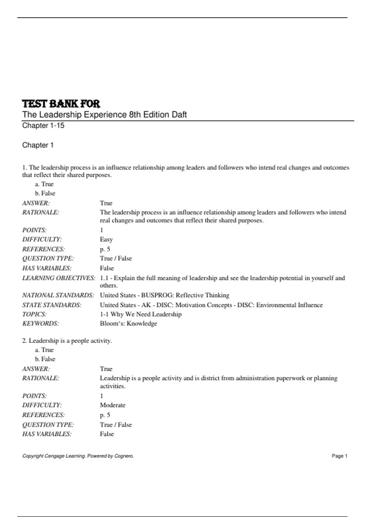 Test Bank for The Leadership Experience 8th Edition by Richard Daft Chapter 1-15
