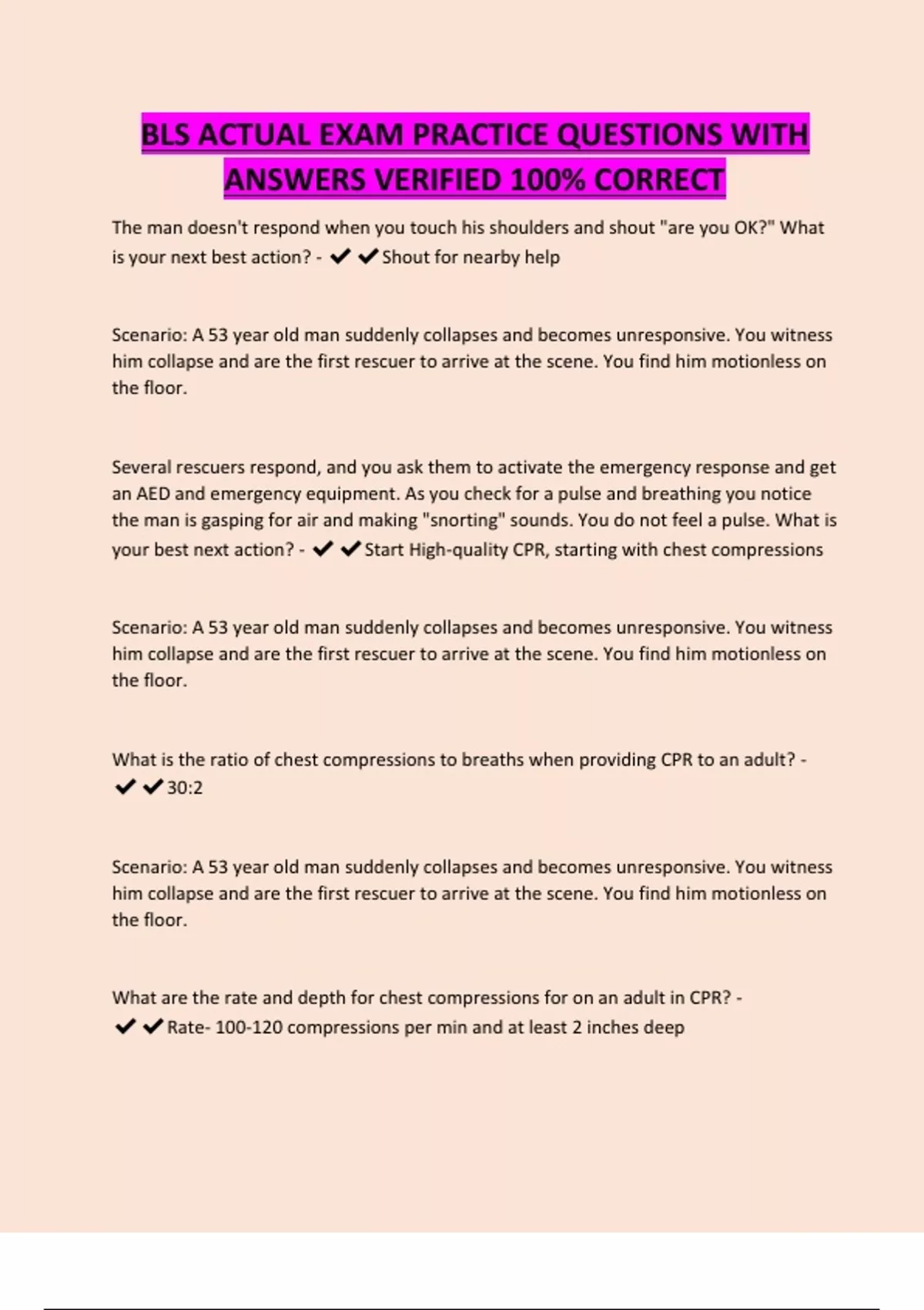 BLS ACTUAL EXAM PRACTICE QUESTIONS WITH